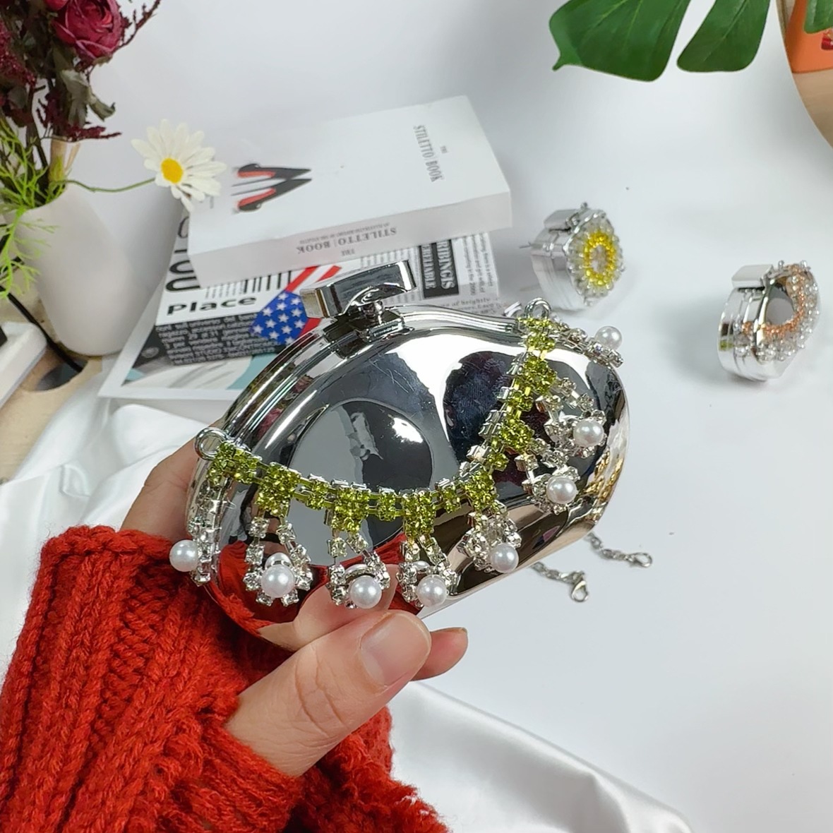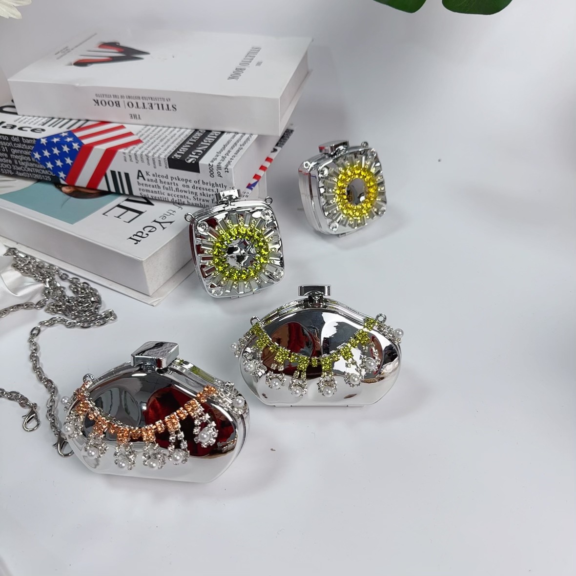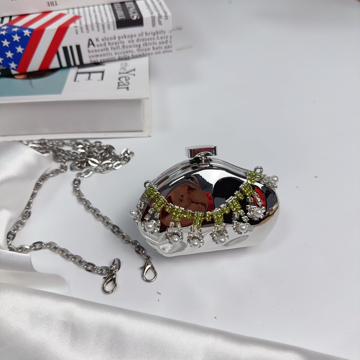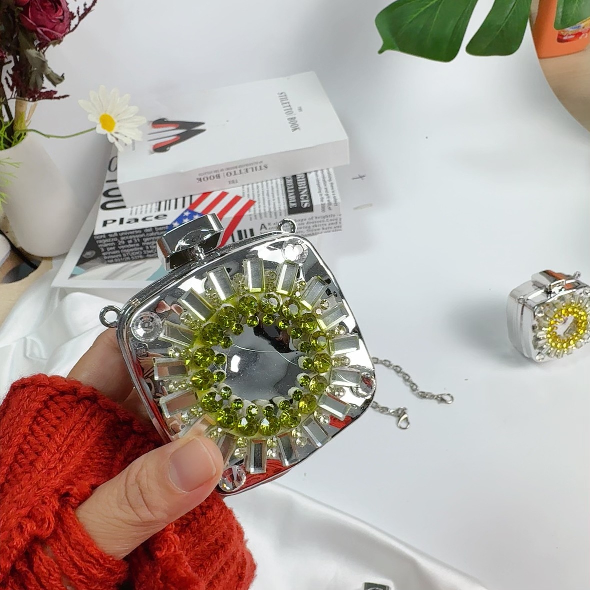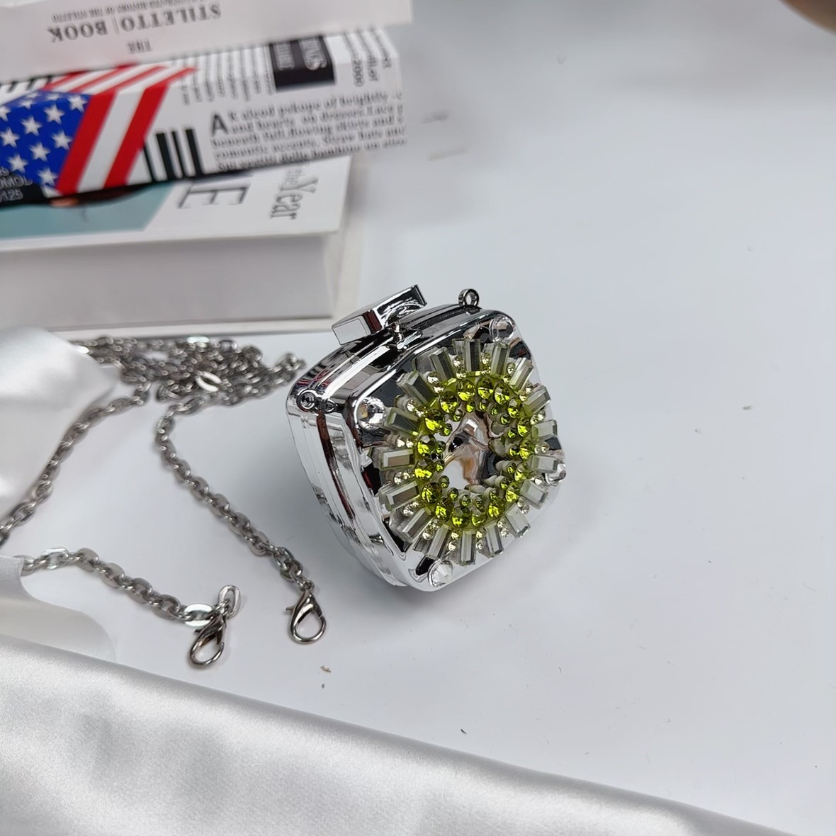 mini square box silver without pendant (diamond green)
