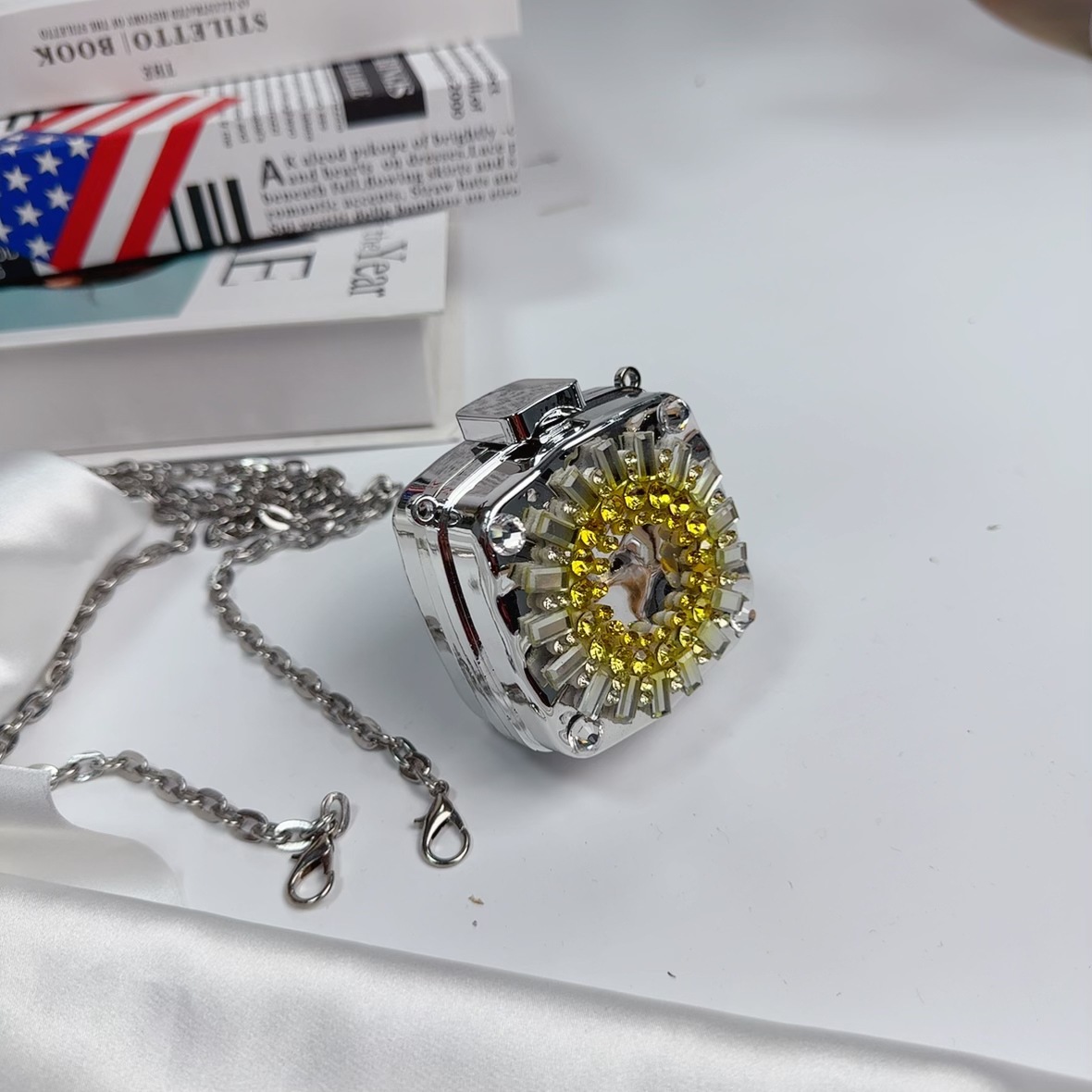 mini square box silver without pendant (diamond yellow)