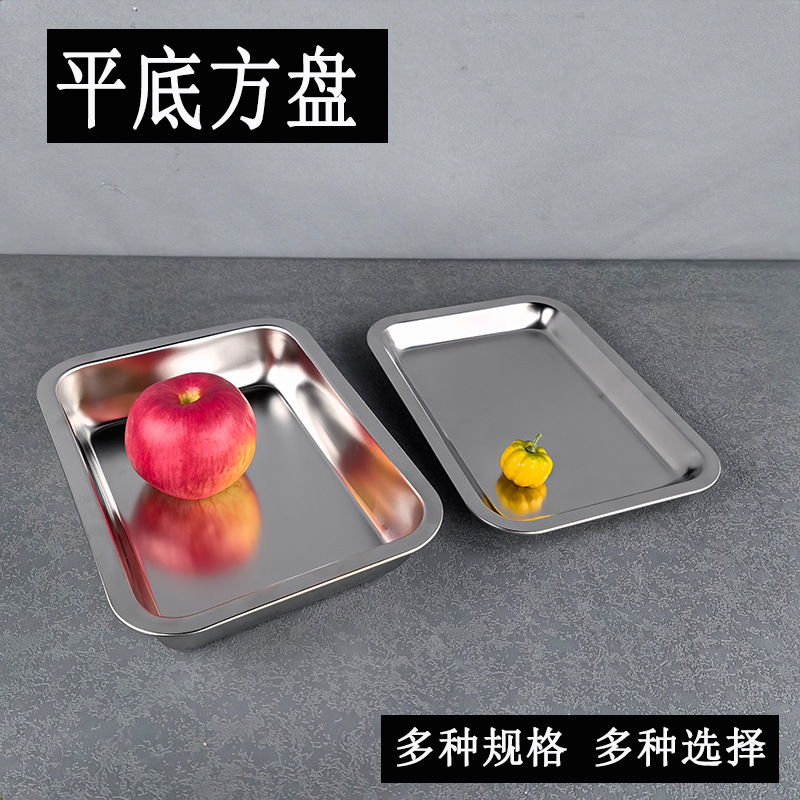 201 304 stainless steel flat bottom square plate steamed rice tray rectangular tray and dinner plate barbecue stall plate grilled fish fast food plate