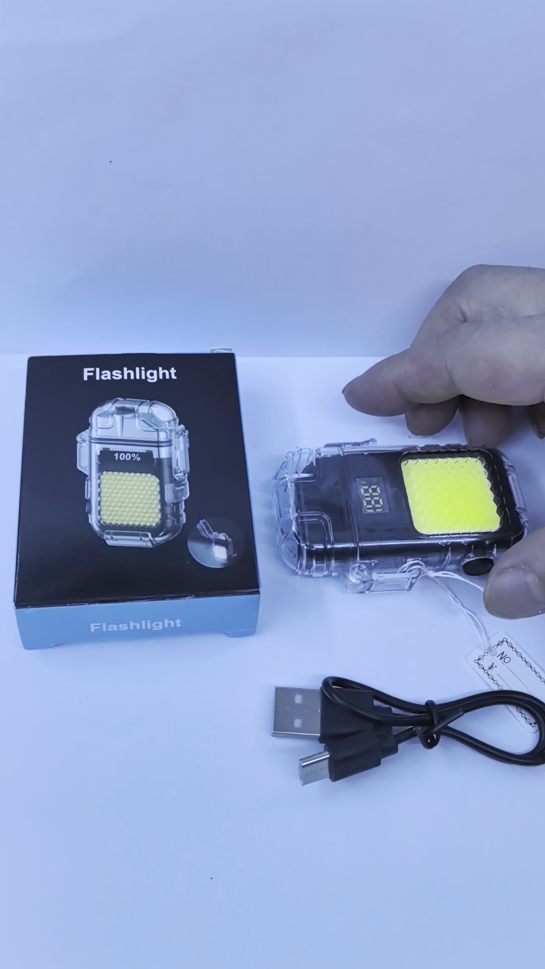 New electric display USB charging cigarette lighter COB key ring light small flashlight, multi-purpose, easy to solve nightscape lighting, cigarette lighting needs. Adopt high brightness cob light source, soft and even light, durable. USB charging design, environmental protection and energy saving, use with charge. Small and portable, keychain design, carry it with no burden. Intelligent Power Display function, the power is clear at a glance, to avoid the embarrassment of sudden power failure. Through strict quality certification, it is safe and reliable. Whether traveling at night or lighting cigarettes in the car, it is your intimate LittleHelper.