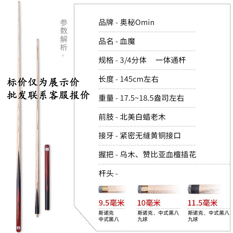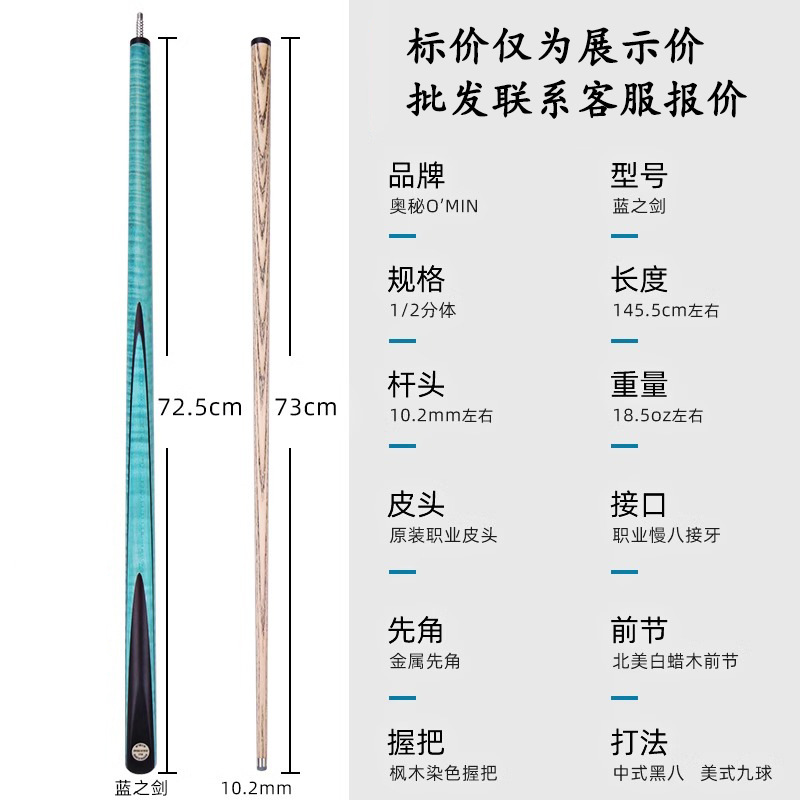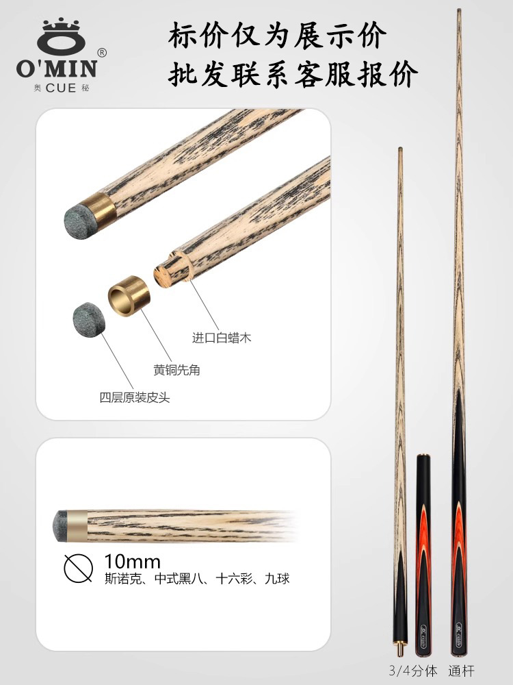 md brand maple split house cue 12.5mm non-mystery