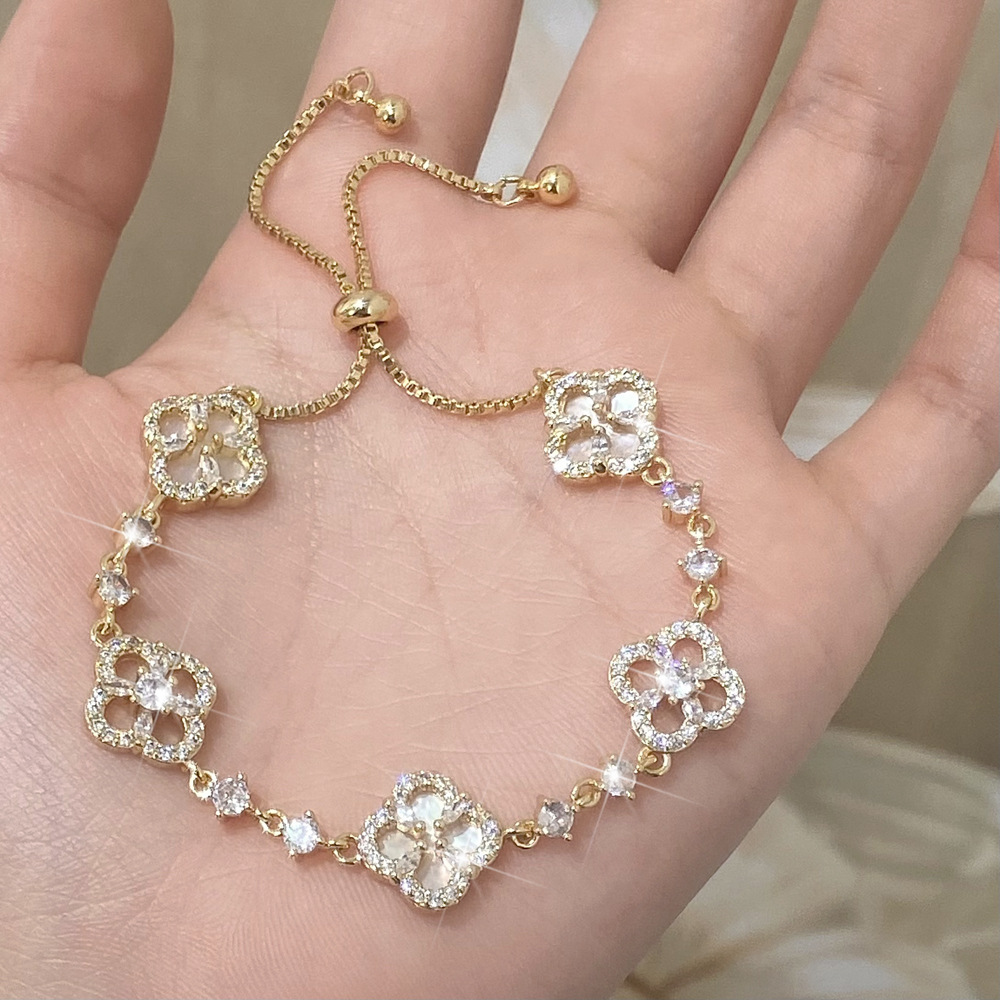 xiaohongshu little sisters are wearing gold four-leaf zircon bracelet d-38