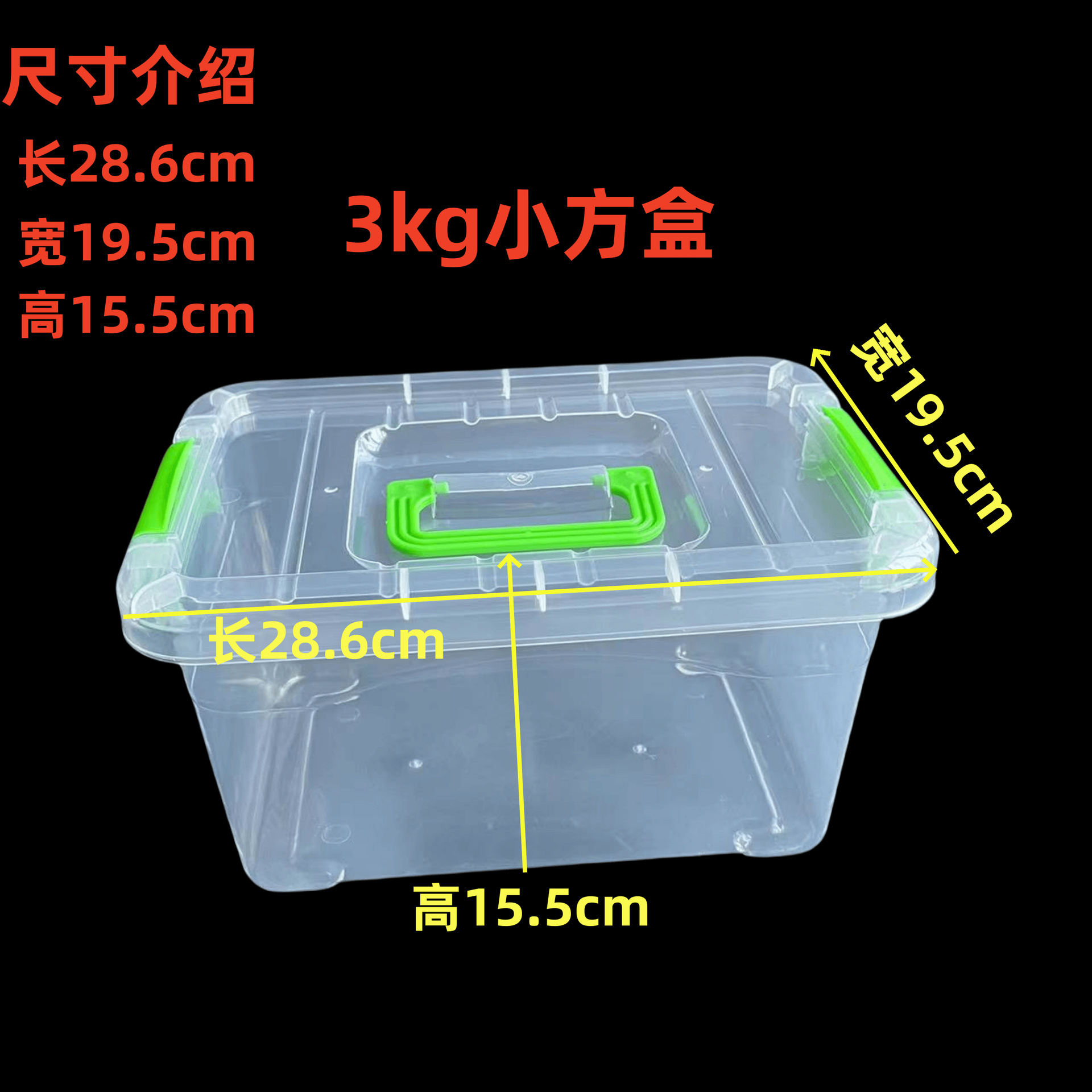transparent square box green buckle 3kg