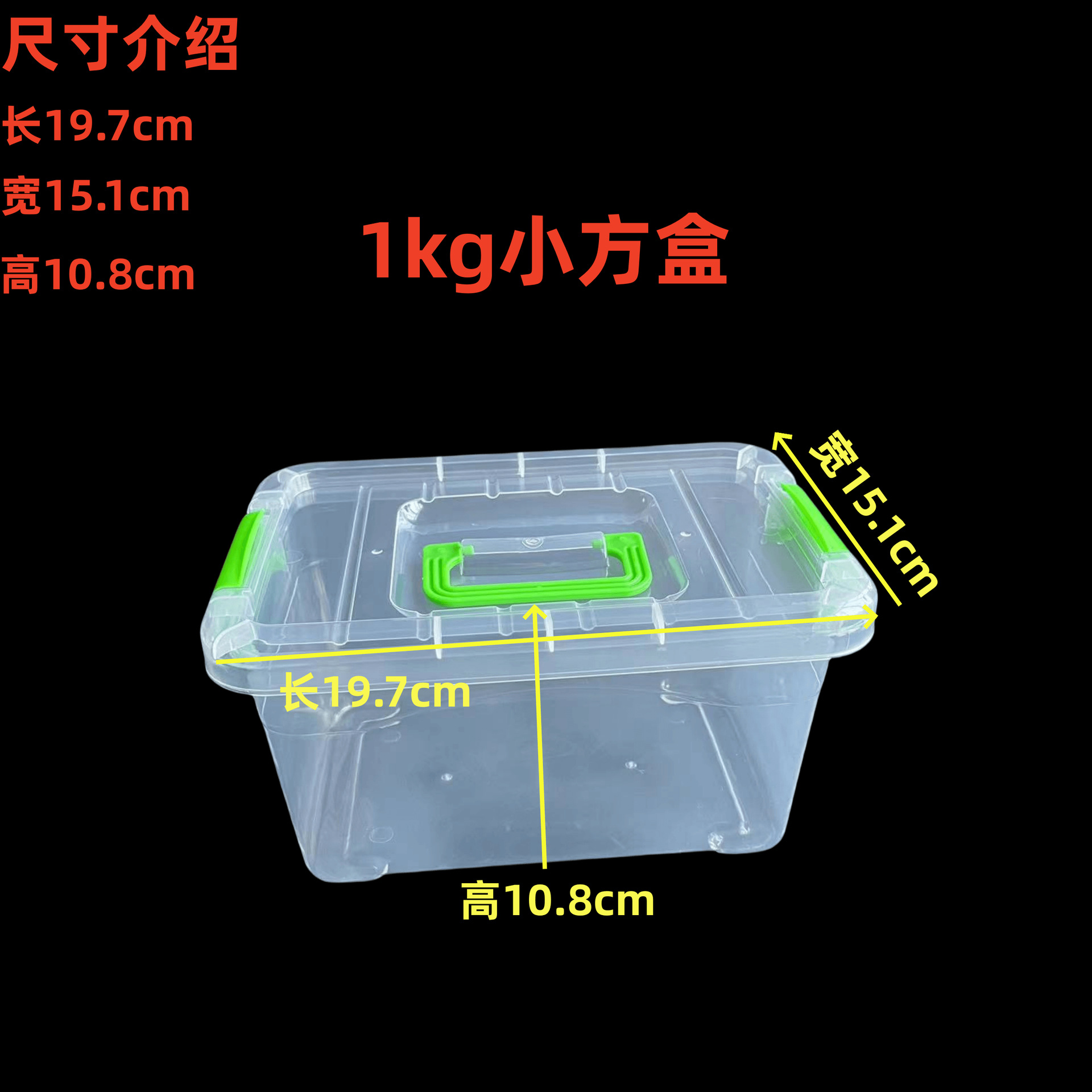 transparent square box green buckle 1kg