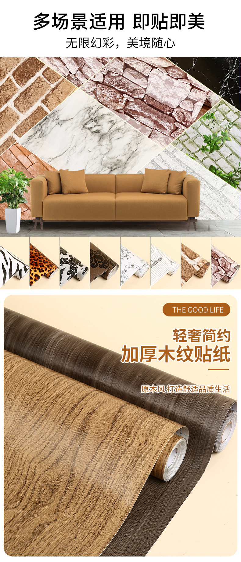 cross-border retro coffee color wood grain wallpaper self-adhesive internet celebrity live background wood color pvc wallpaper customization