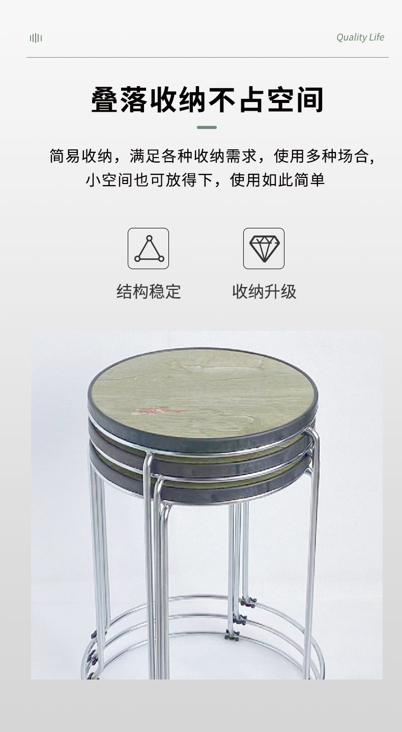 restaurant stool household round stool stackable steel bar stool stall restaurant canteen storage climbing thickened