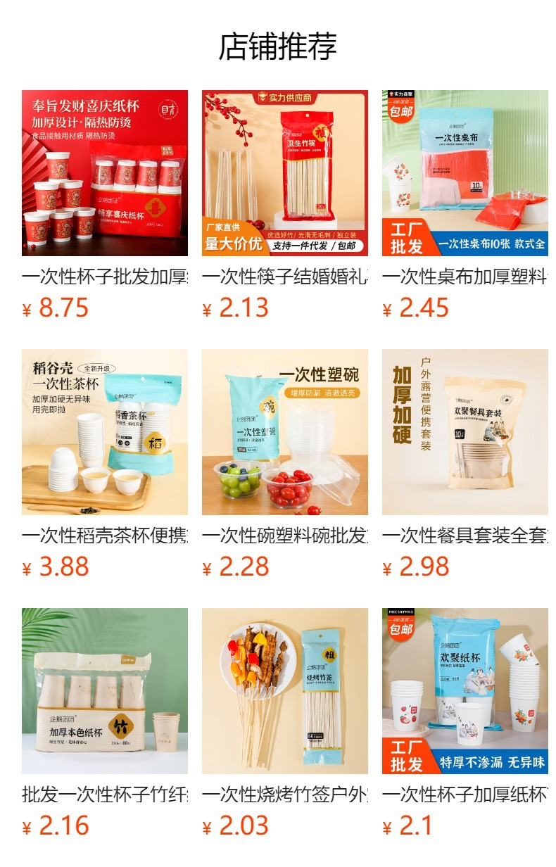 | 10 pcs/bag (cup height 8.6 * cup mouth 7.5 * cup bottom 5.3cm) | CN¥ 0.0 | 597 pack available |