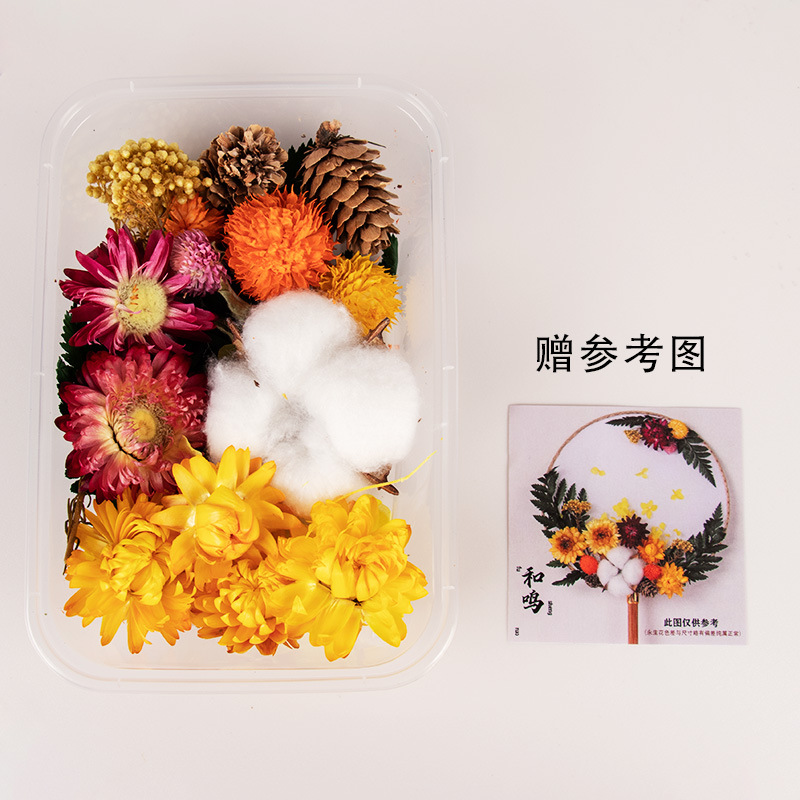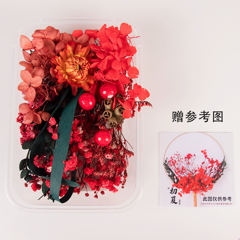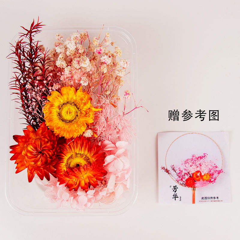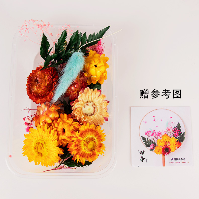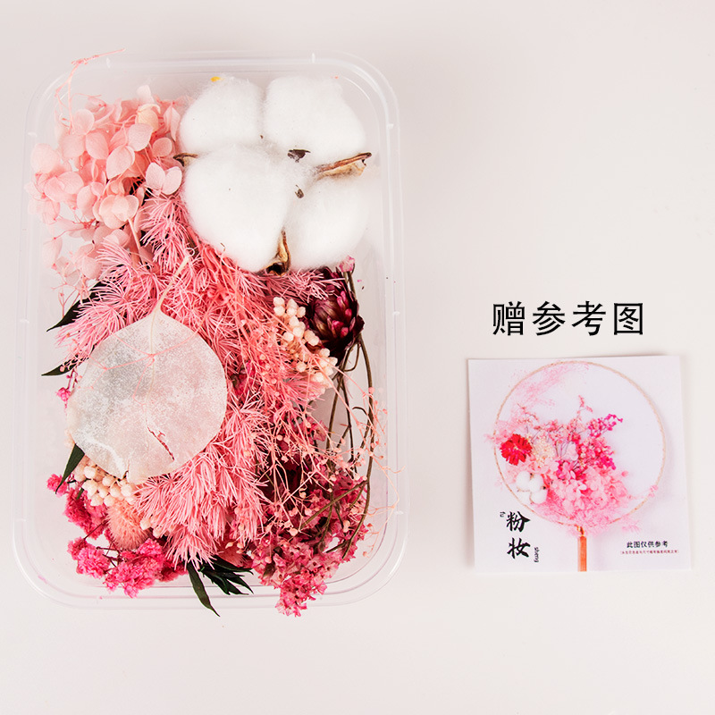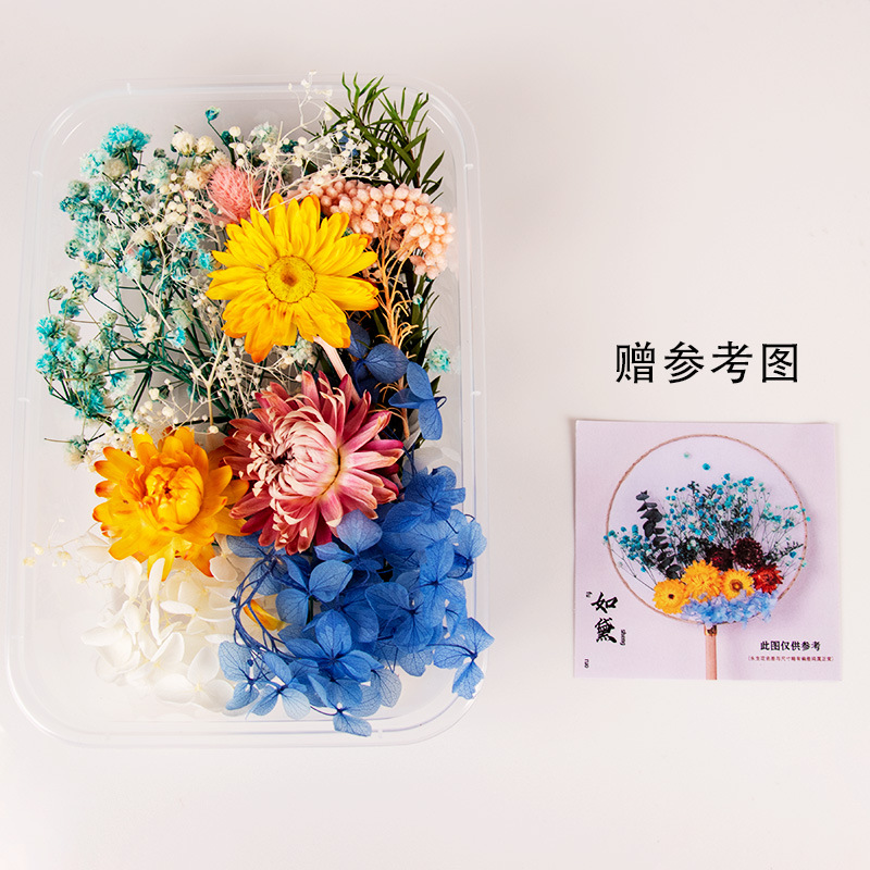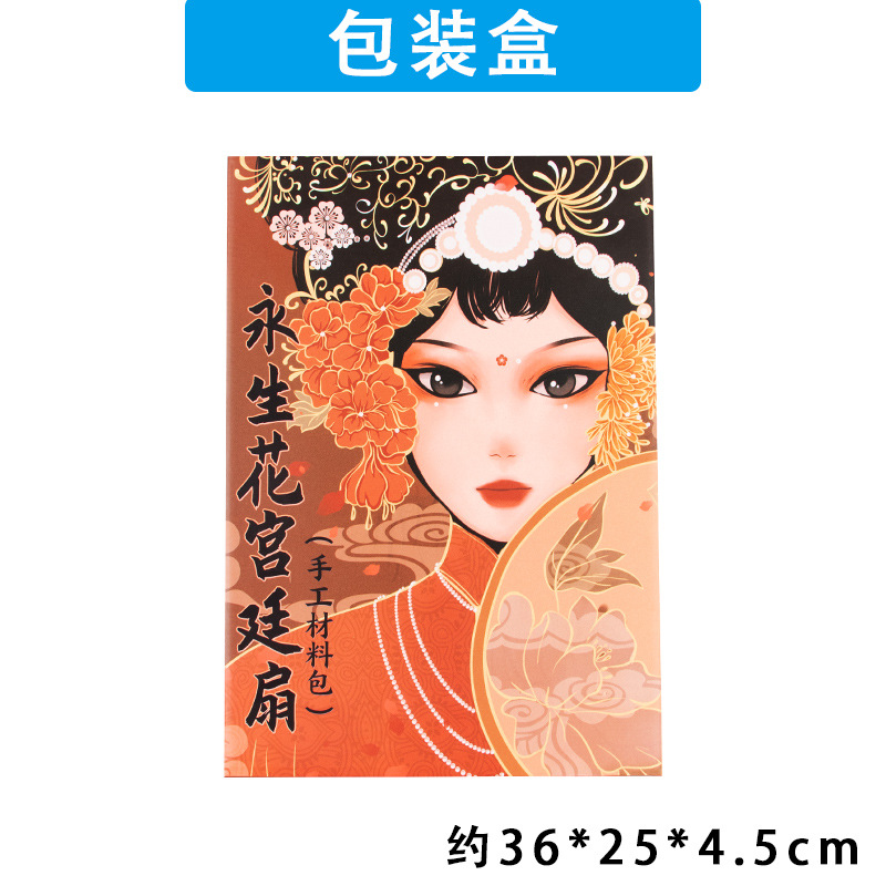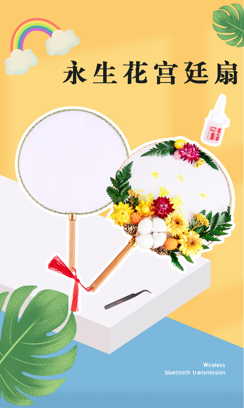 preserved fresh flower single pack + wood color blank circular fan + material package