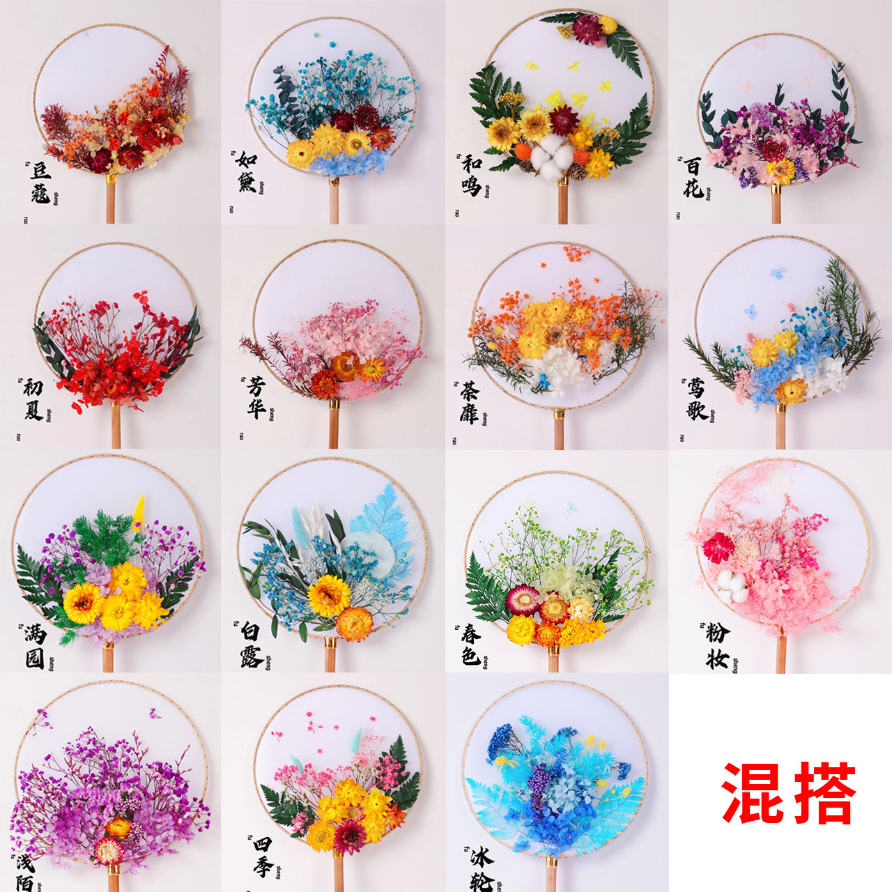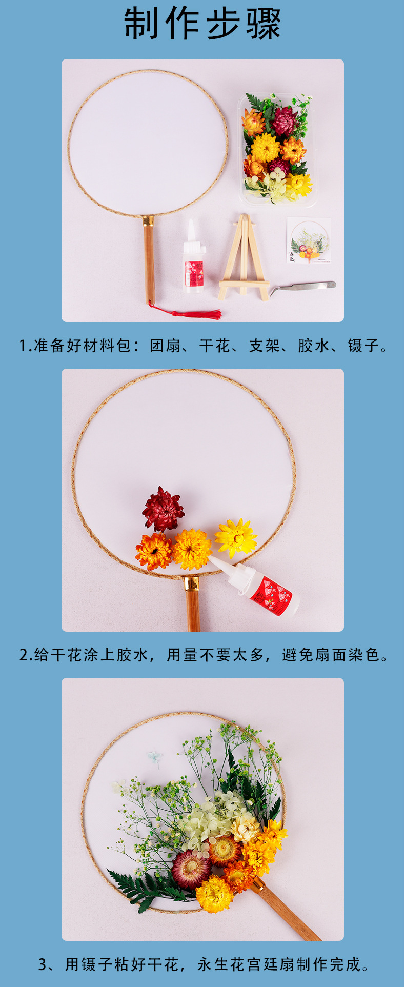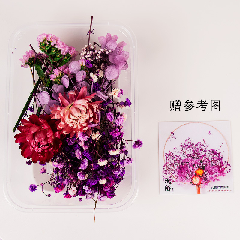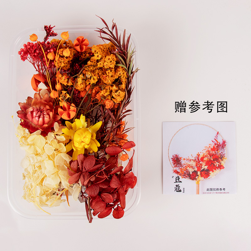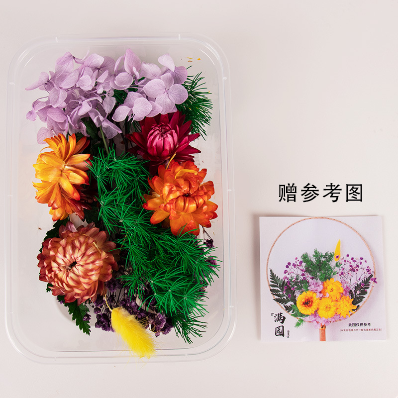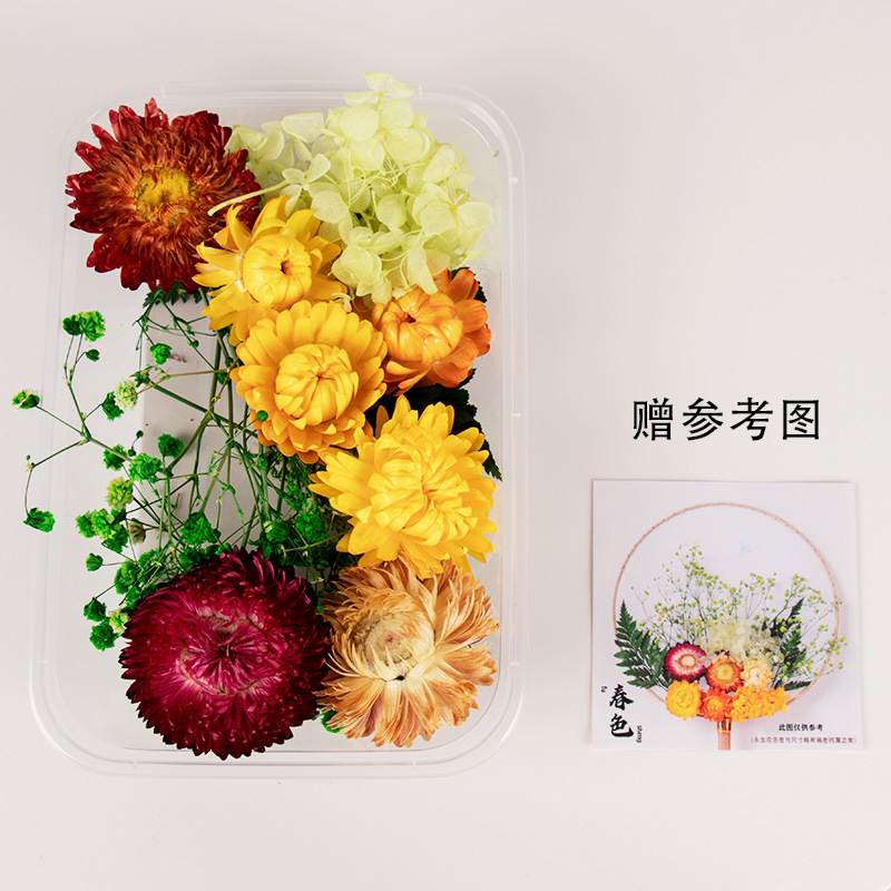 preserved fresh flower single pack + wood color blank circular fan + material package