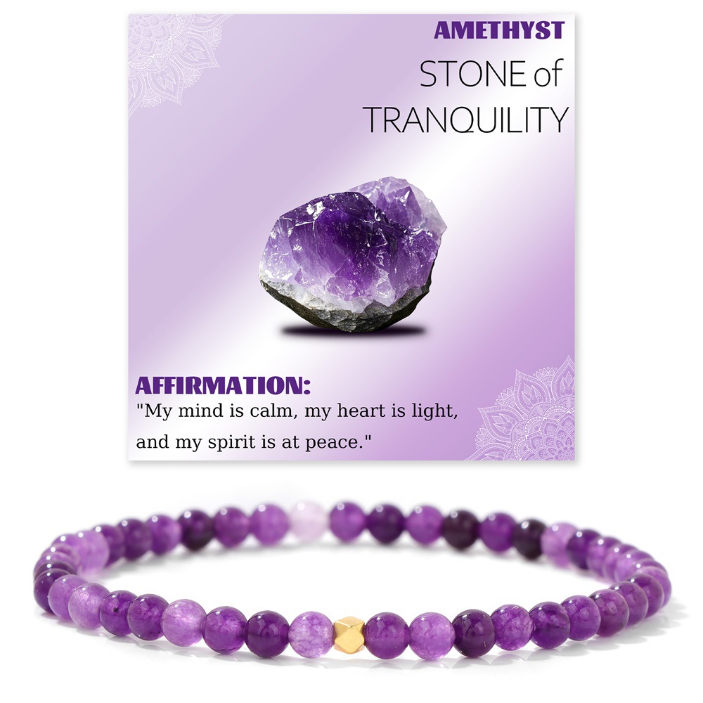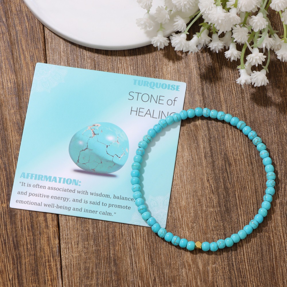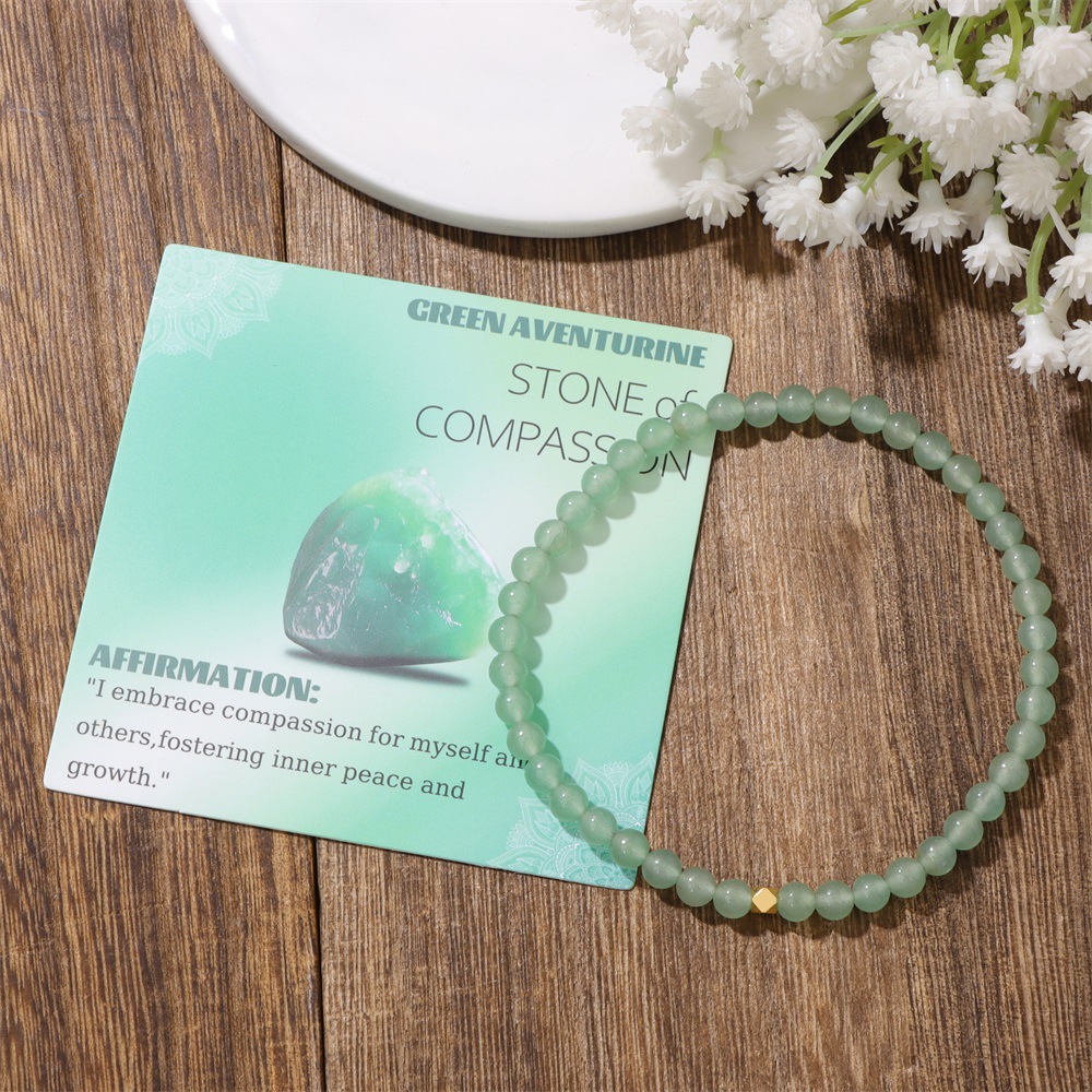 Product Name: 4mm Stone Beaded Bracelet with Elastic Cord in Cardboard Packaging