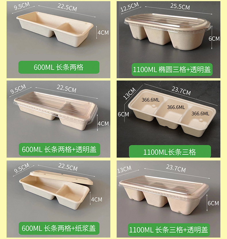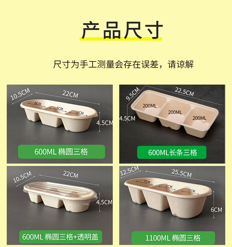 600ml thickened oval three-grid + transparency cover