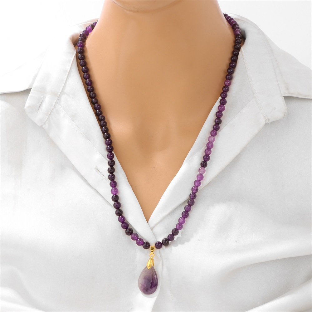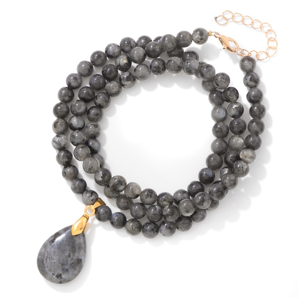Product Name: 6mm Stone Beaded Pendant Necklace