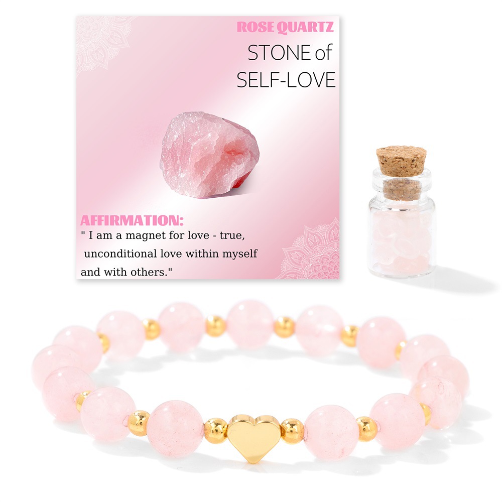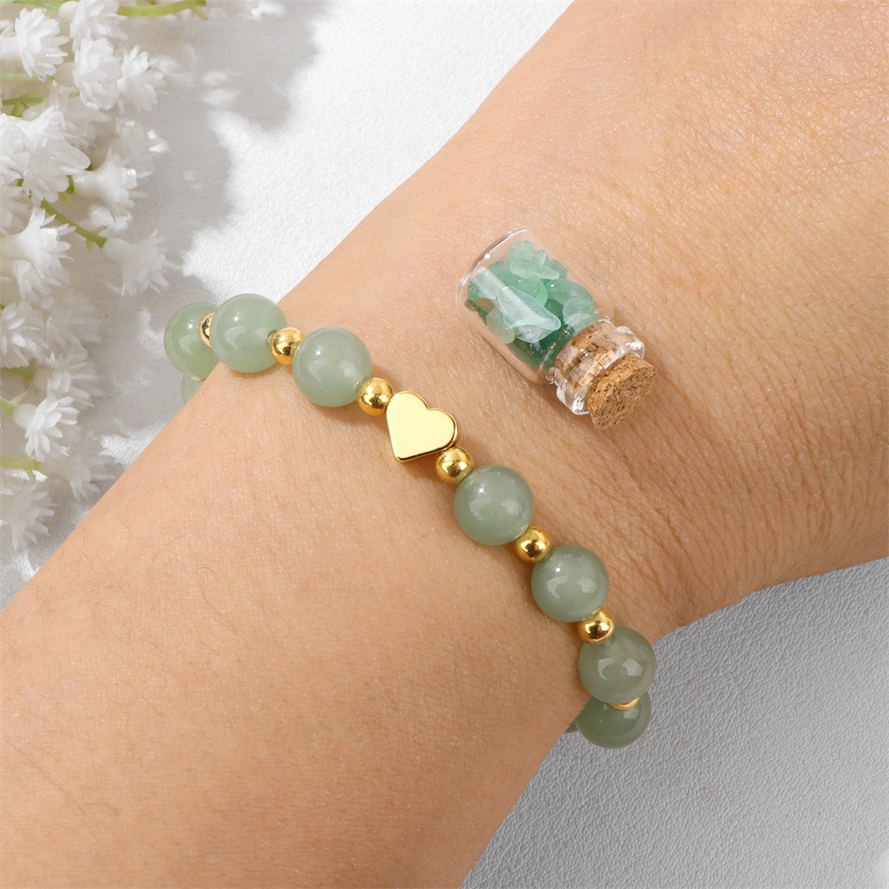 Product Name: 8mm Stone Beaded K Gold Heart-Shaped Drifting Bottle Bracelet