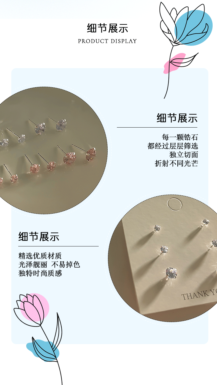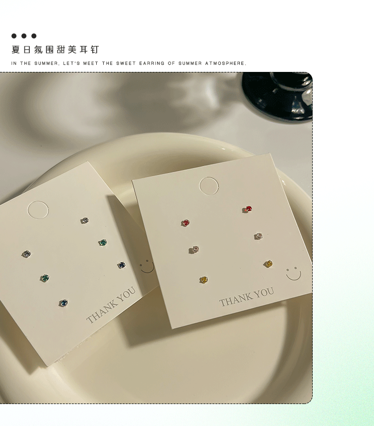 nine-color 3mm zircon stud earrings