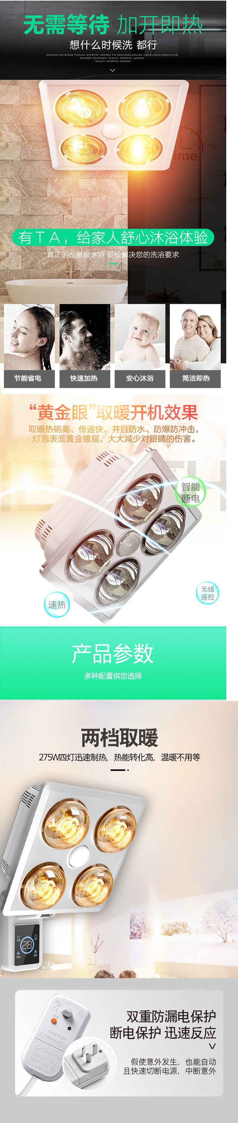 wall-mounted four lights + high-heat yellow bubble + leakage protection