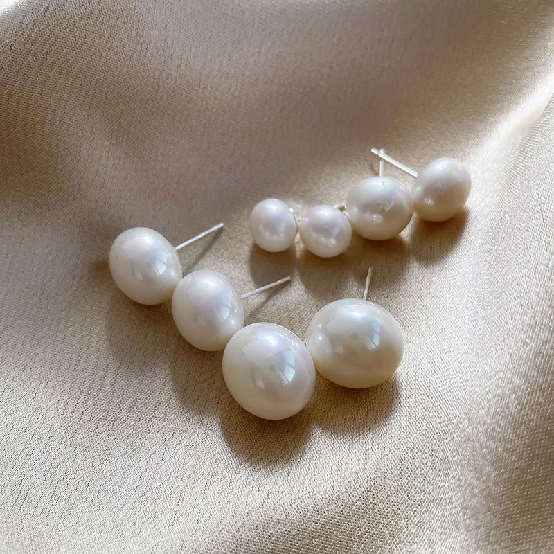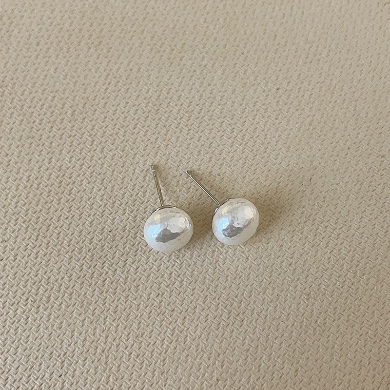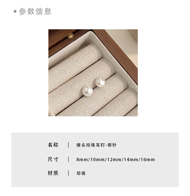 10mm steamed bread pearl stud earrings-silver needle