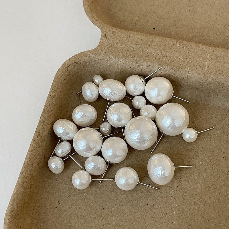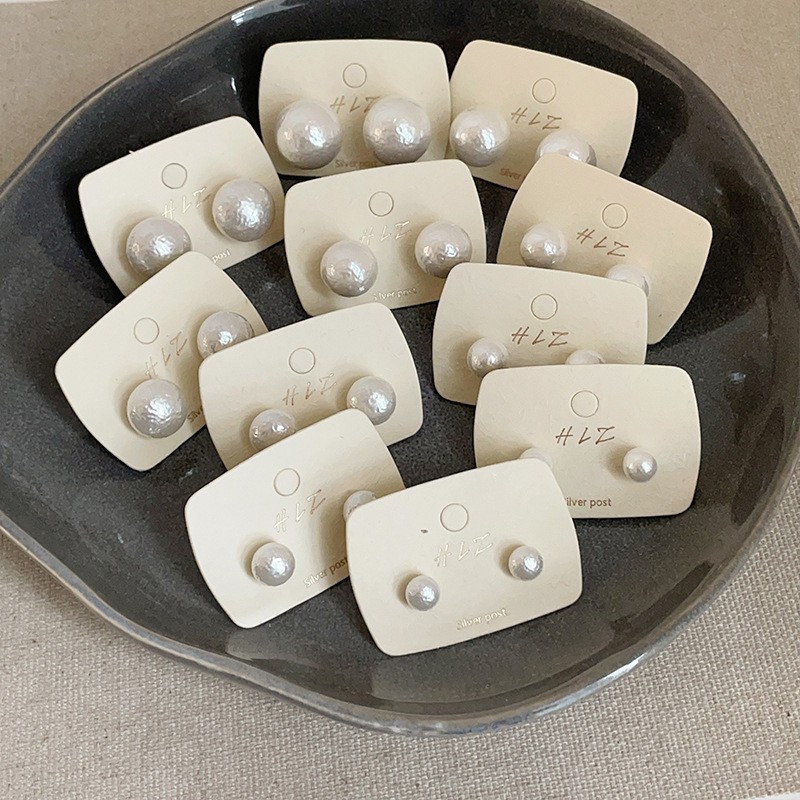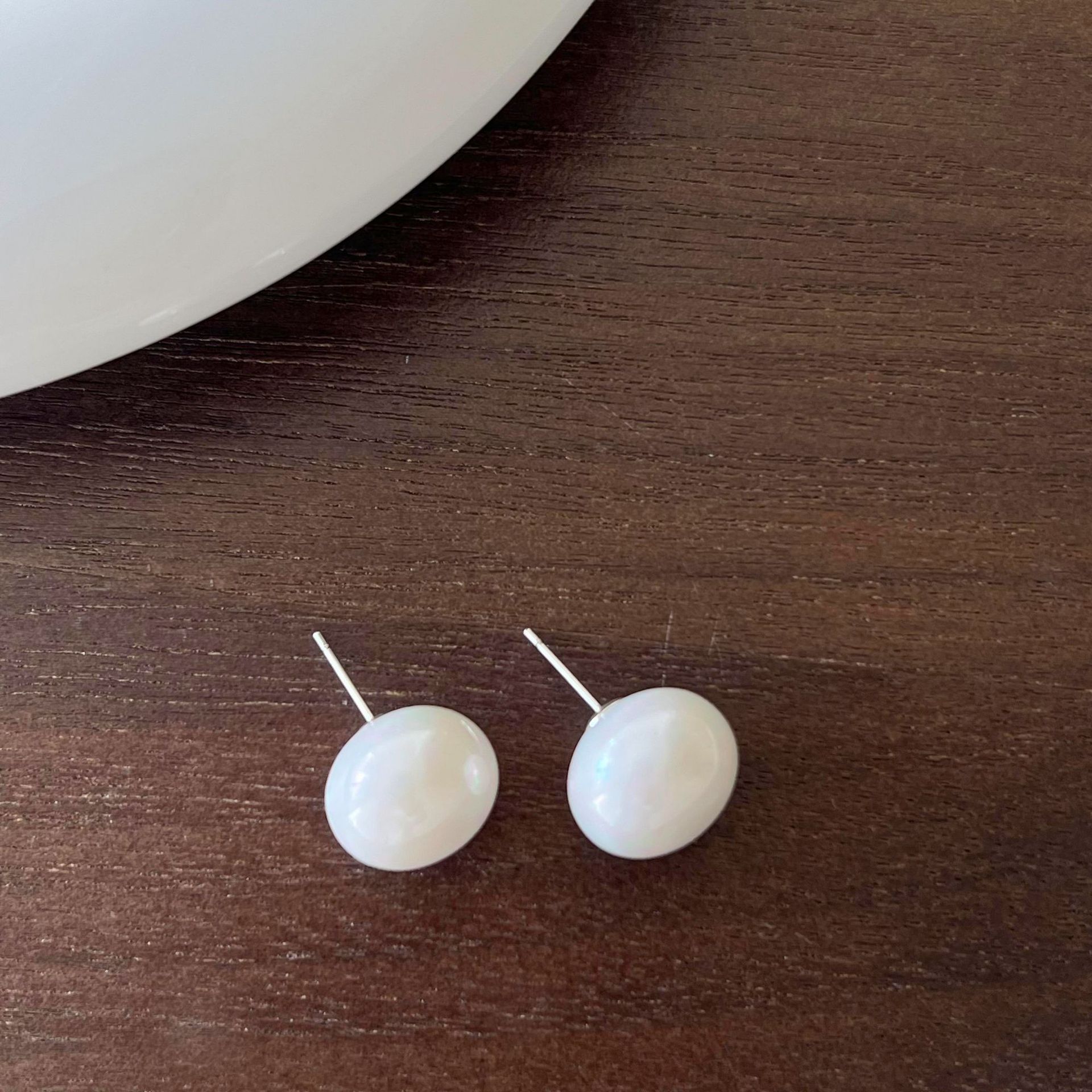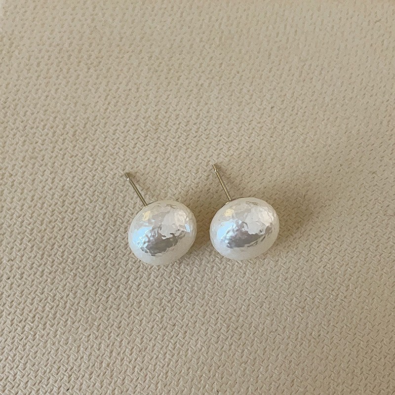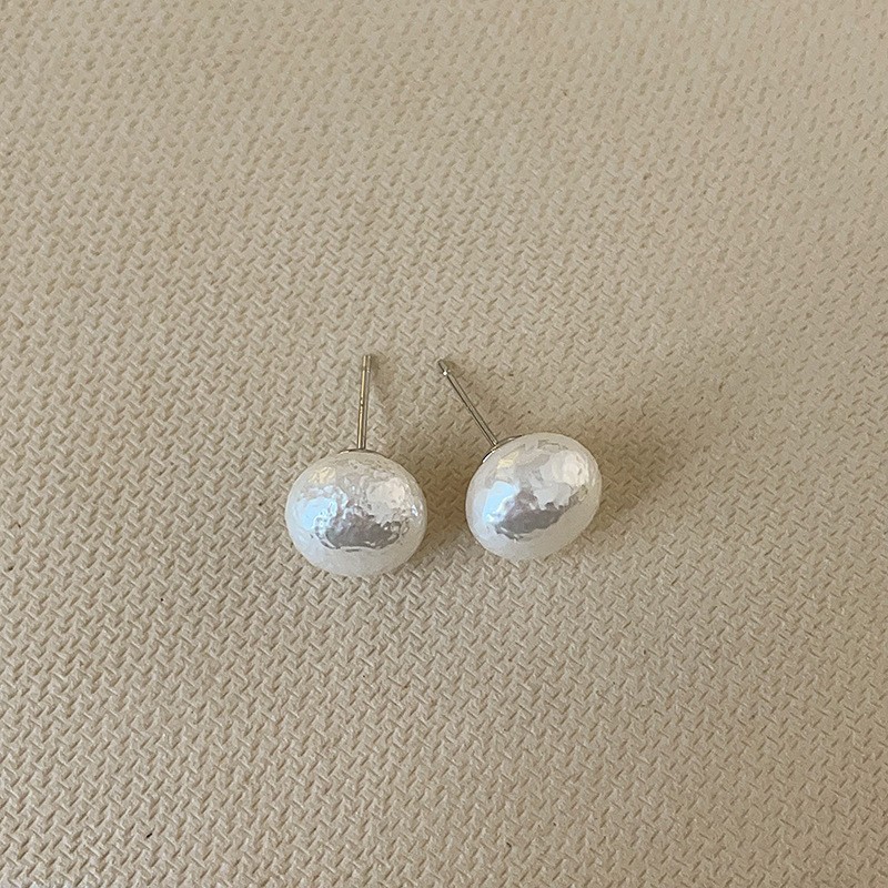 14mm steamed bread pearl stud earrings-silver needle