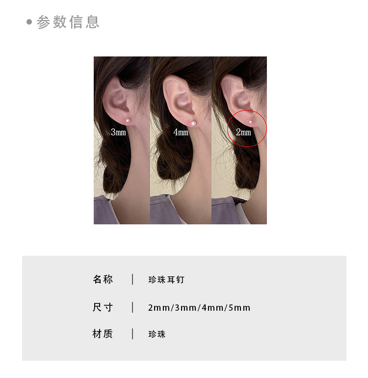 2mm freshwater pearl ear studs
