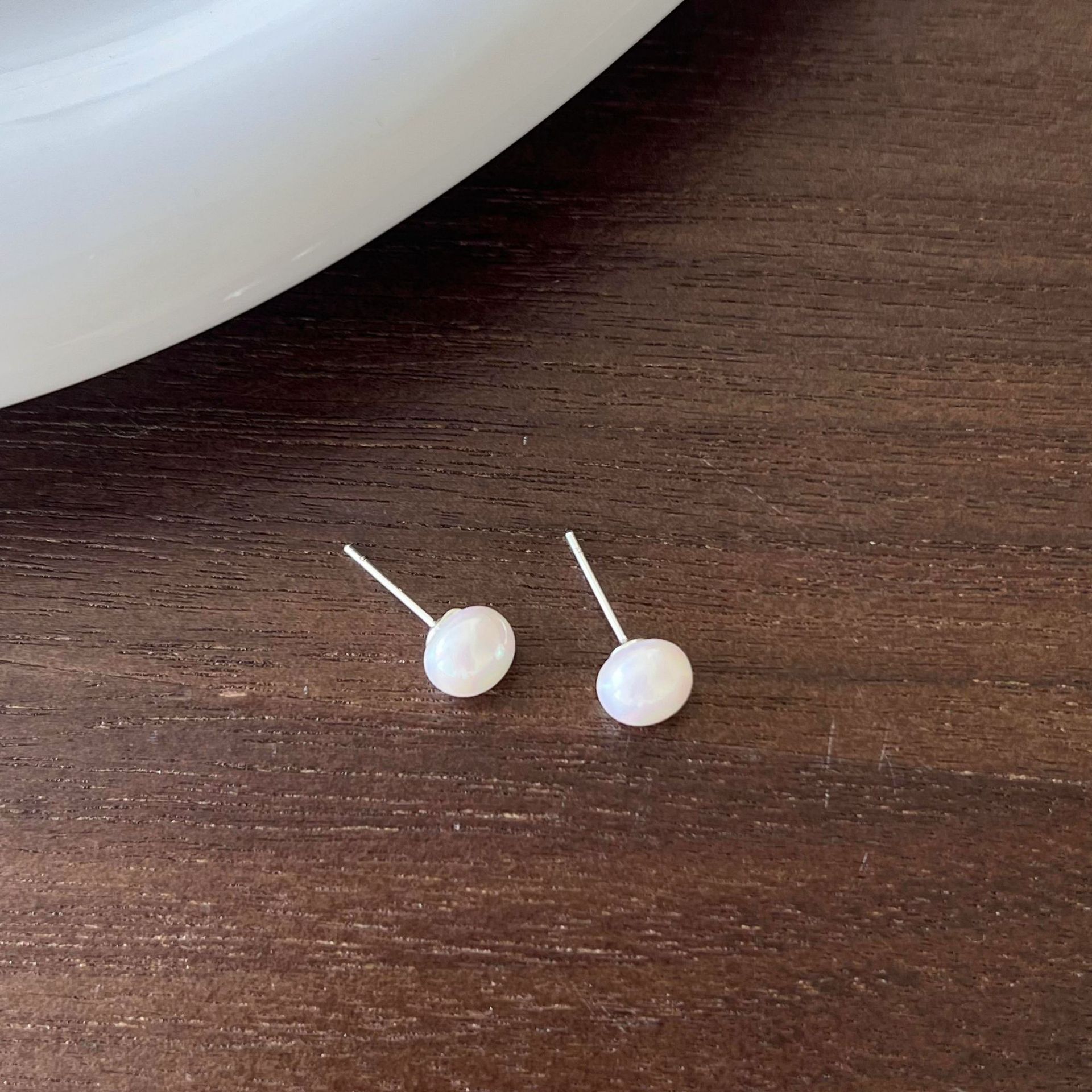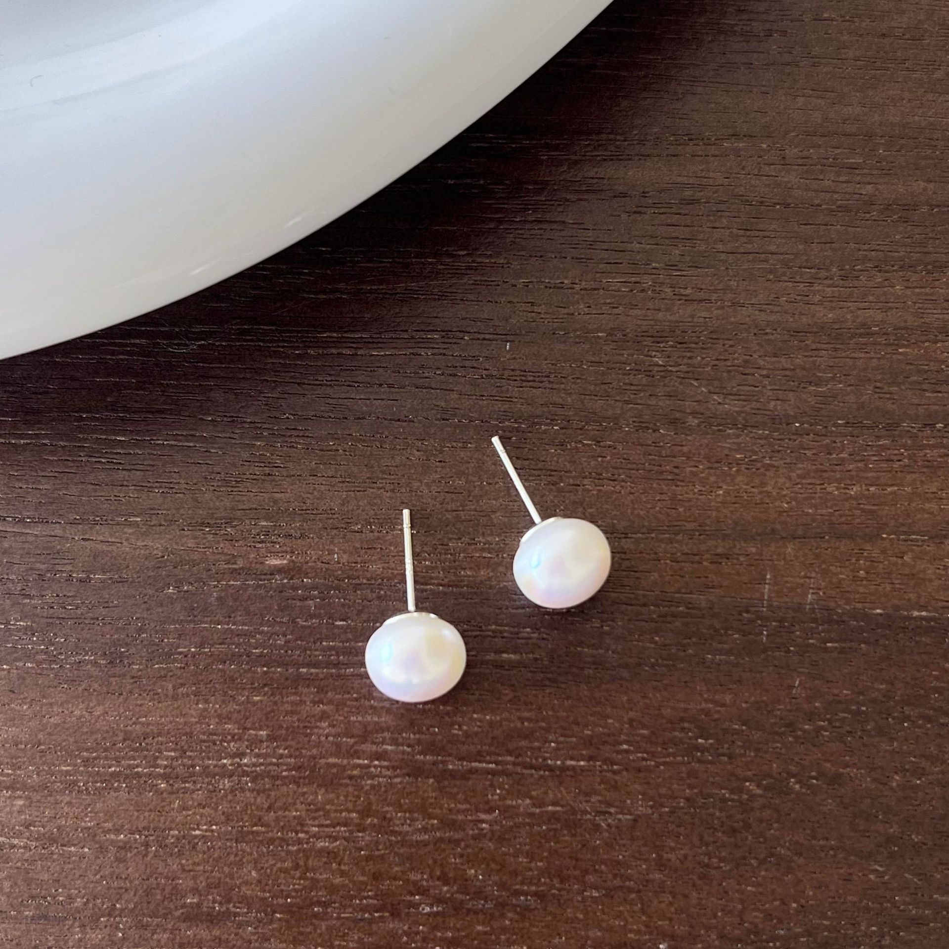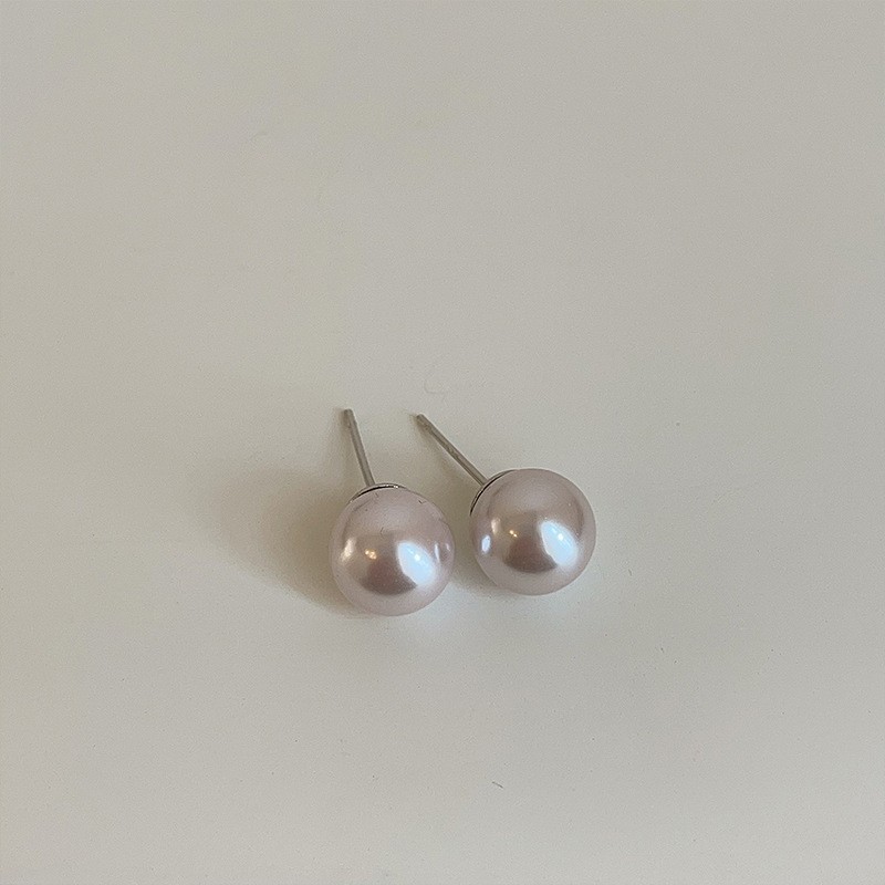 8mm steamed bread pearl stud earrings-silver needle