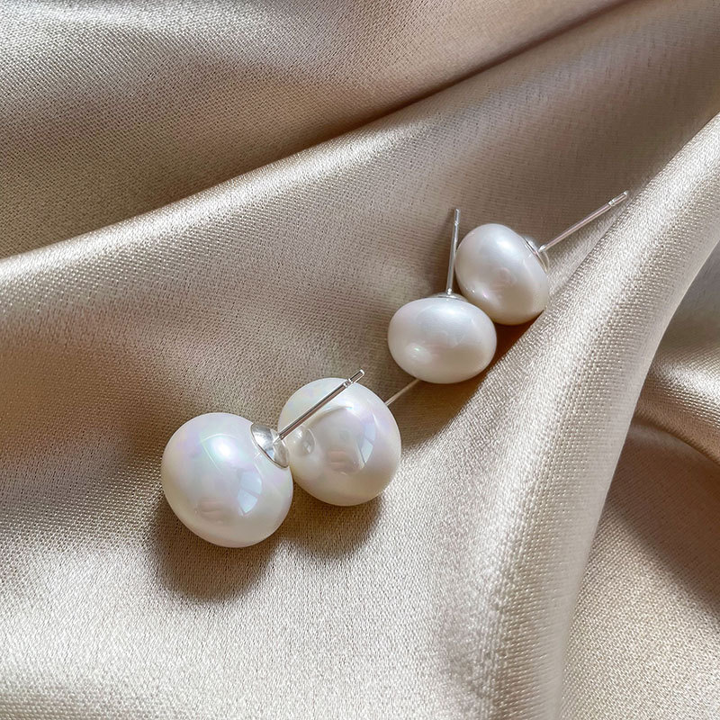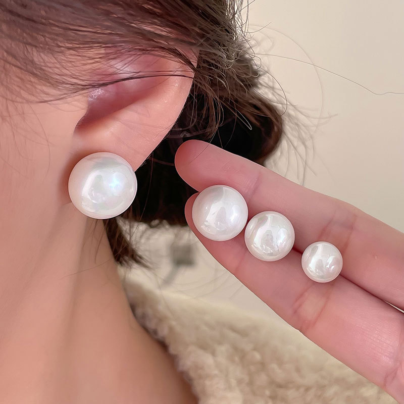 16mm steamed bread pearl stud earrings-silver needle