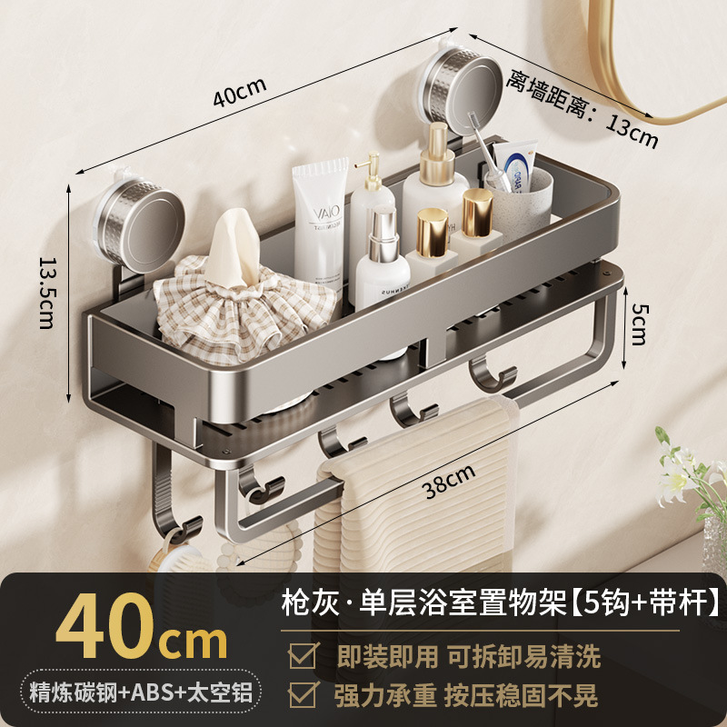[suction cup-gun gray] single layer 40cm +5 hooks +1 towel bar
