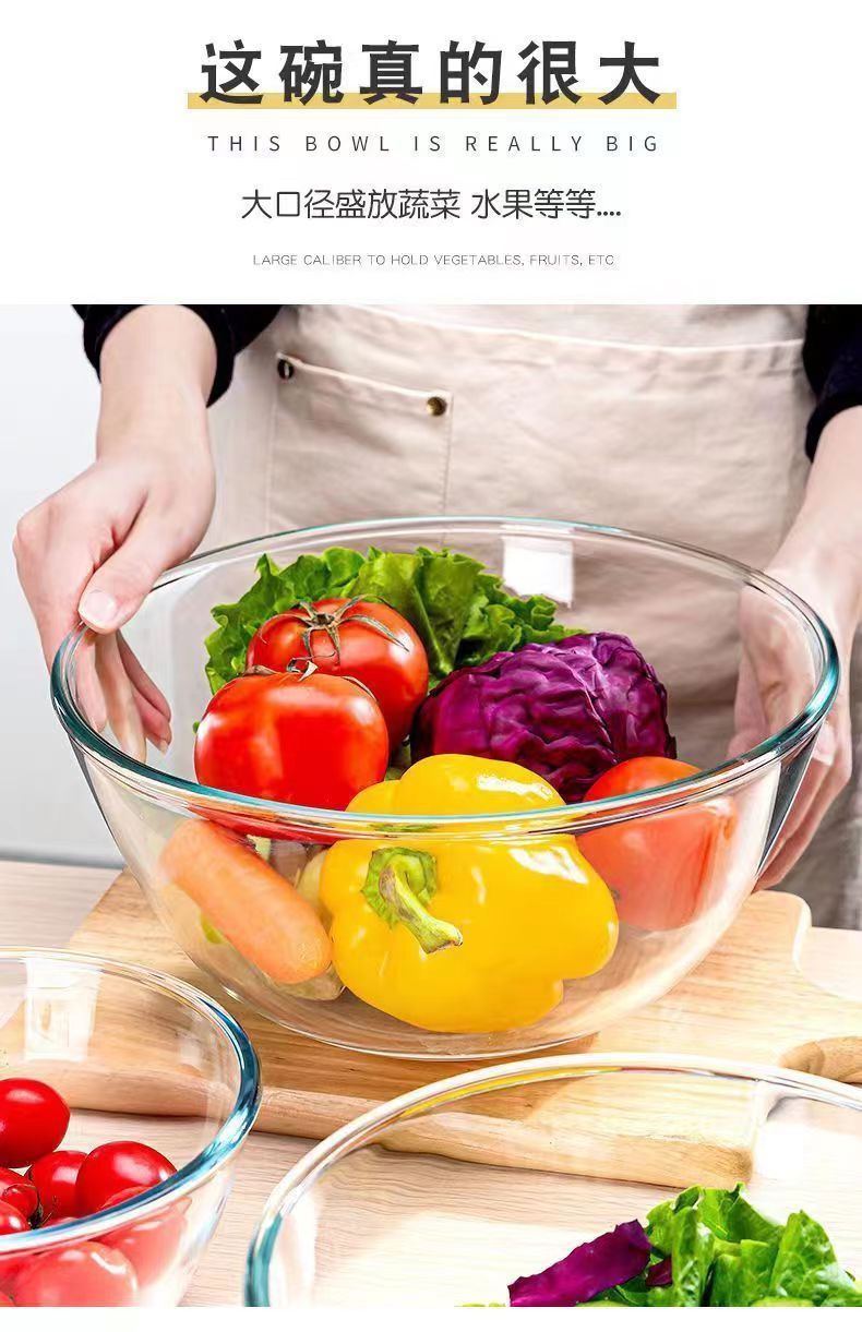 salad bowl thick glass bowl microwave oven high temperature resistant home instant noodle bowl fruit oversized dough basin