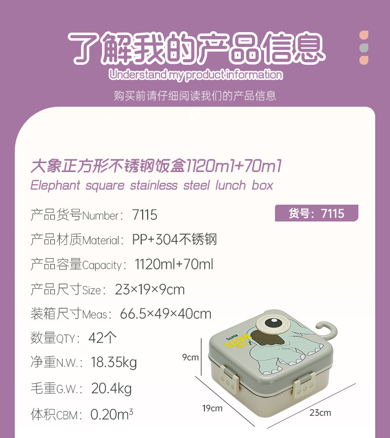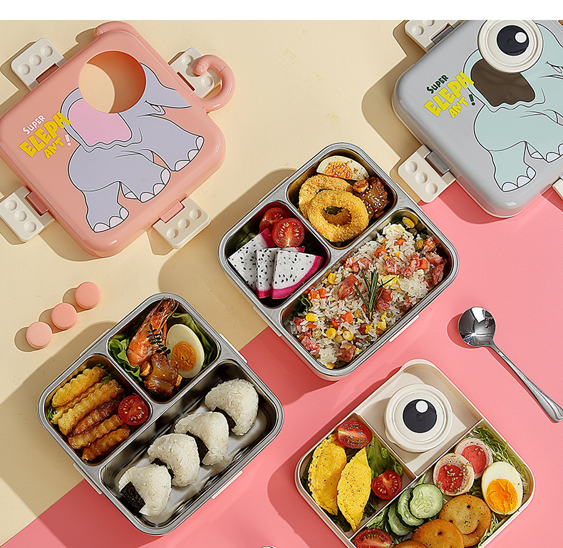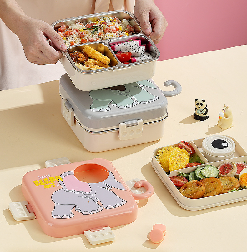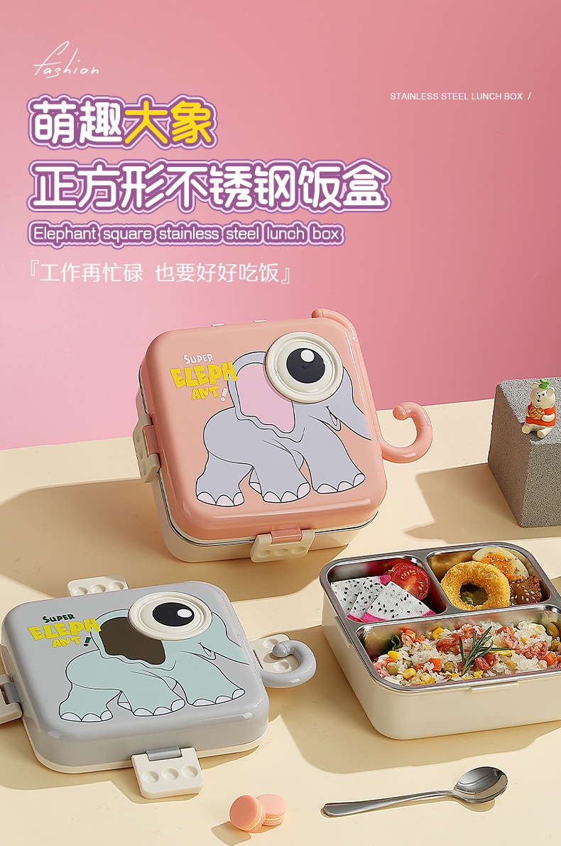 cute elephant stainless steel lunch box student campus lunch portable divided lunch box insulation bento lunch box
