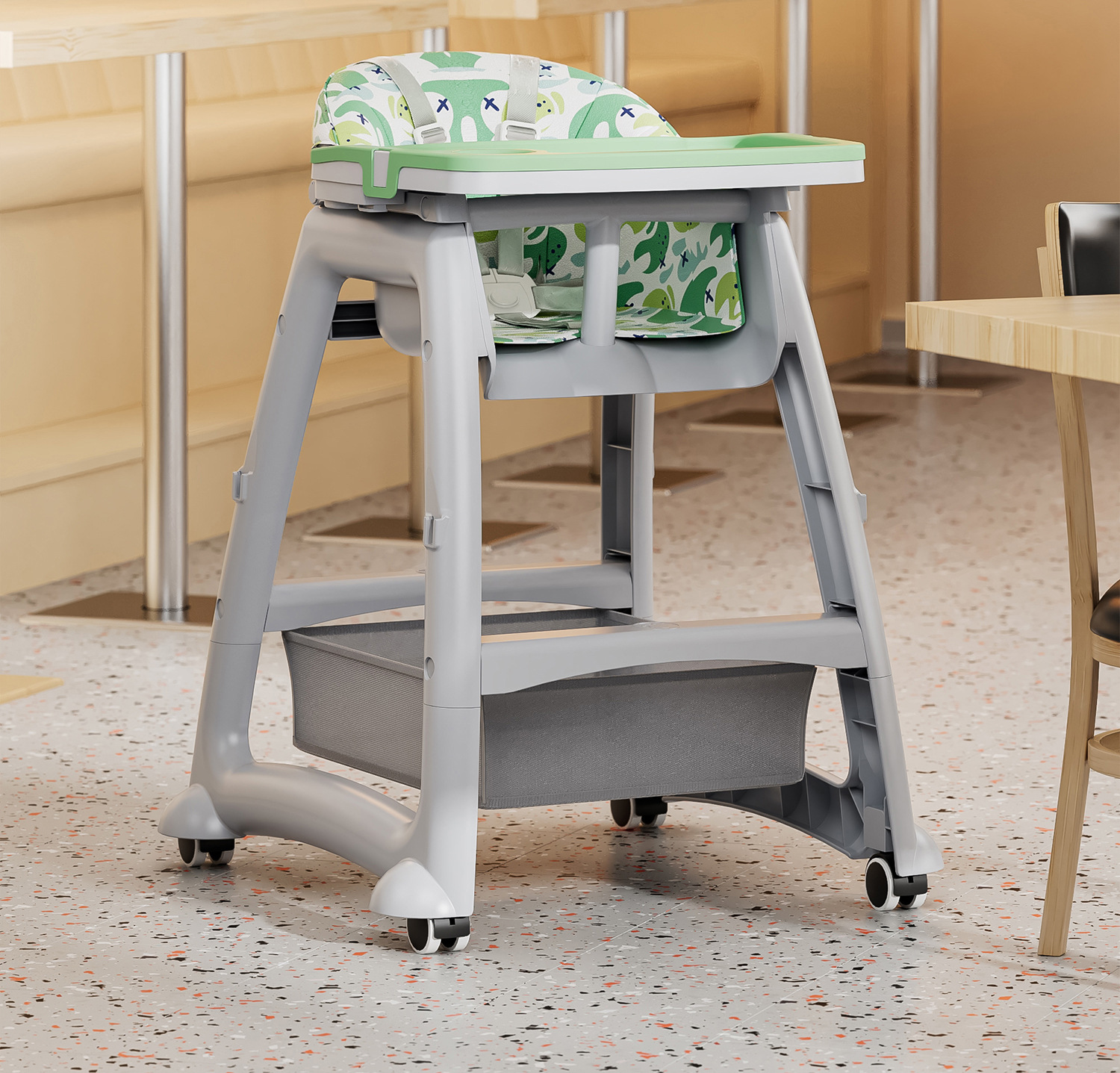 [heightened] green dining chair + brake wheel + net pocket