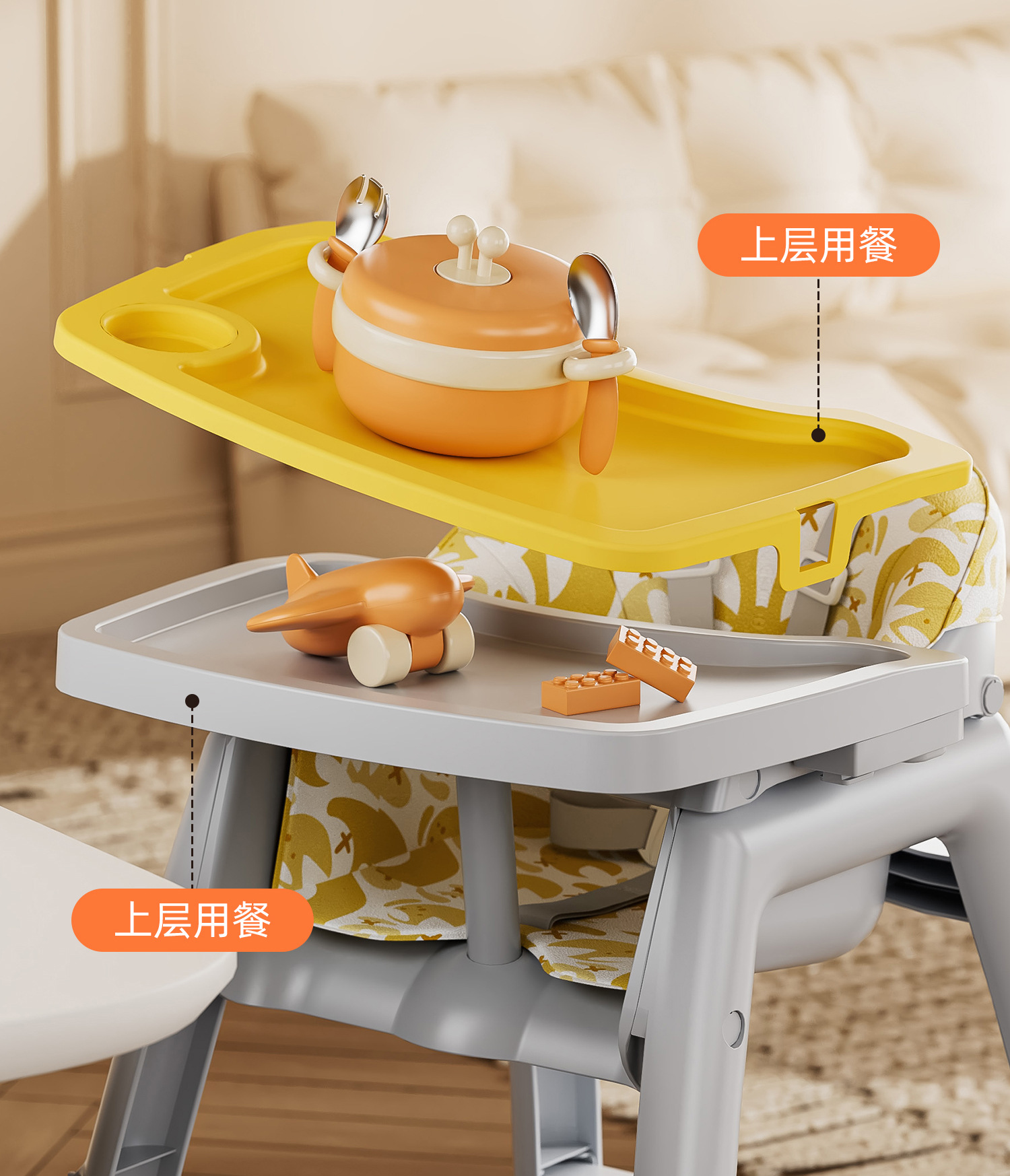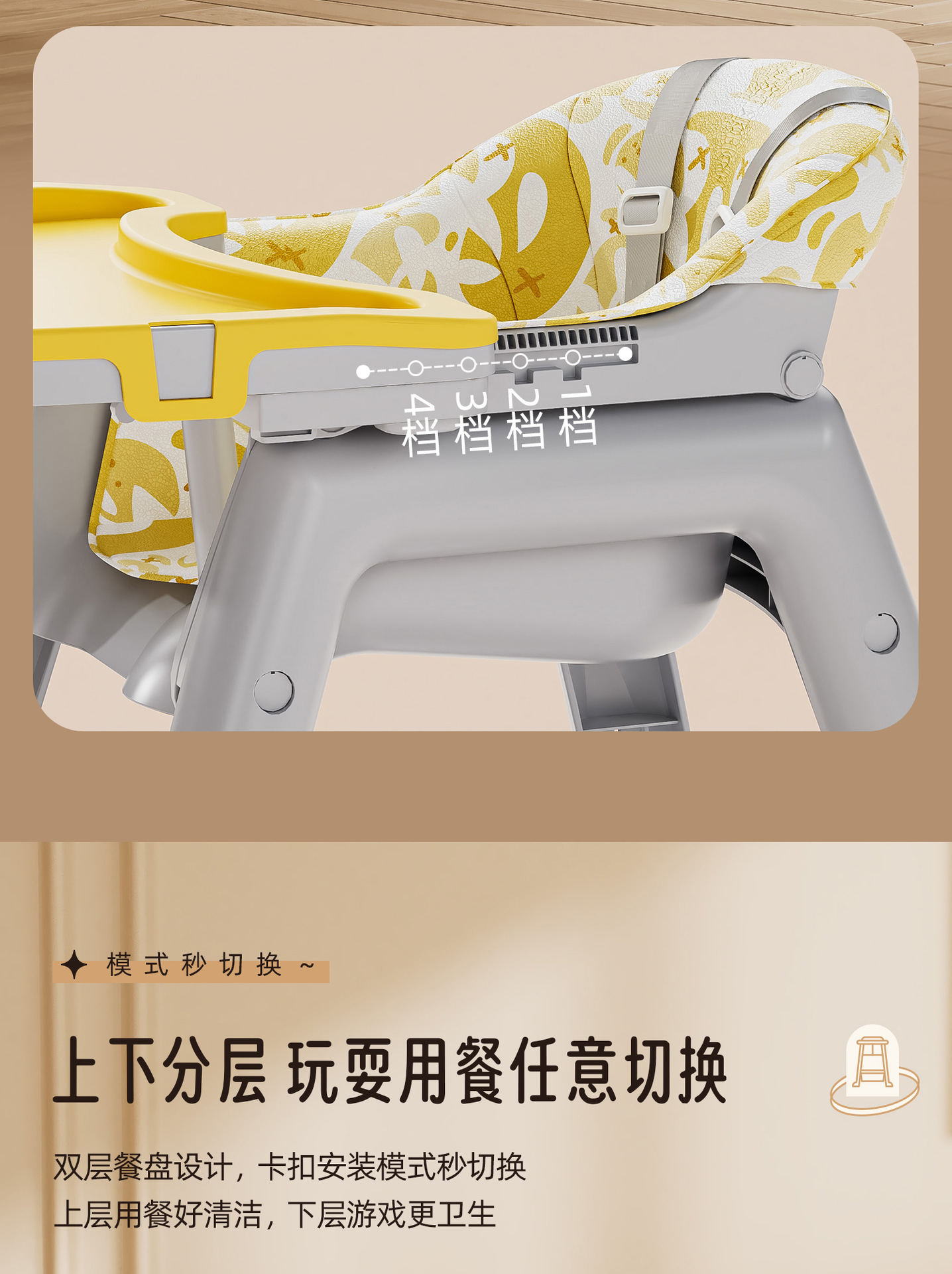 [heightened] yellow dining chair + cushion + brake wheel + net pocket