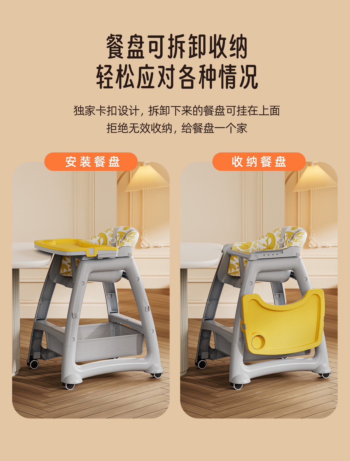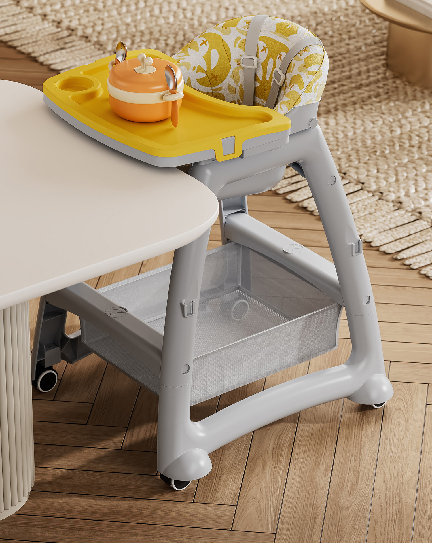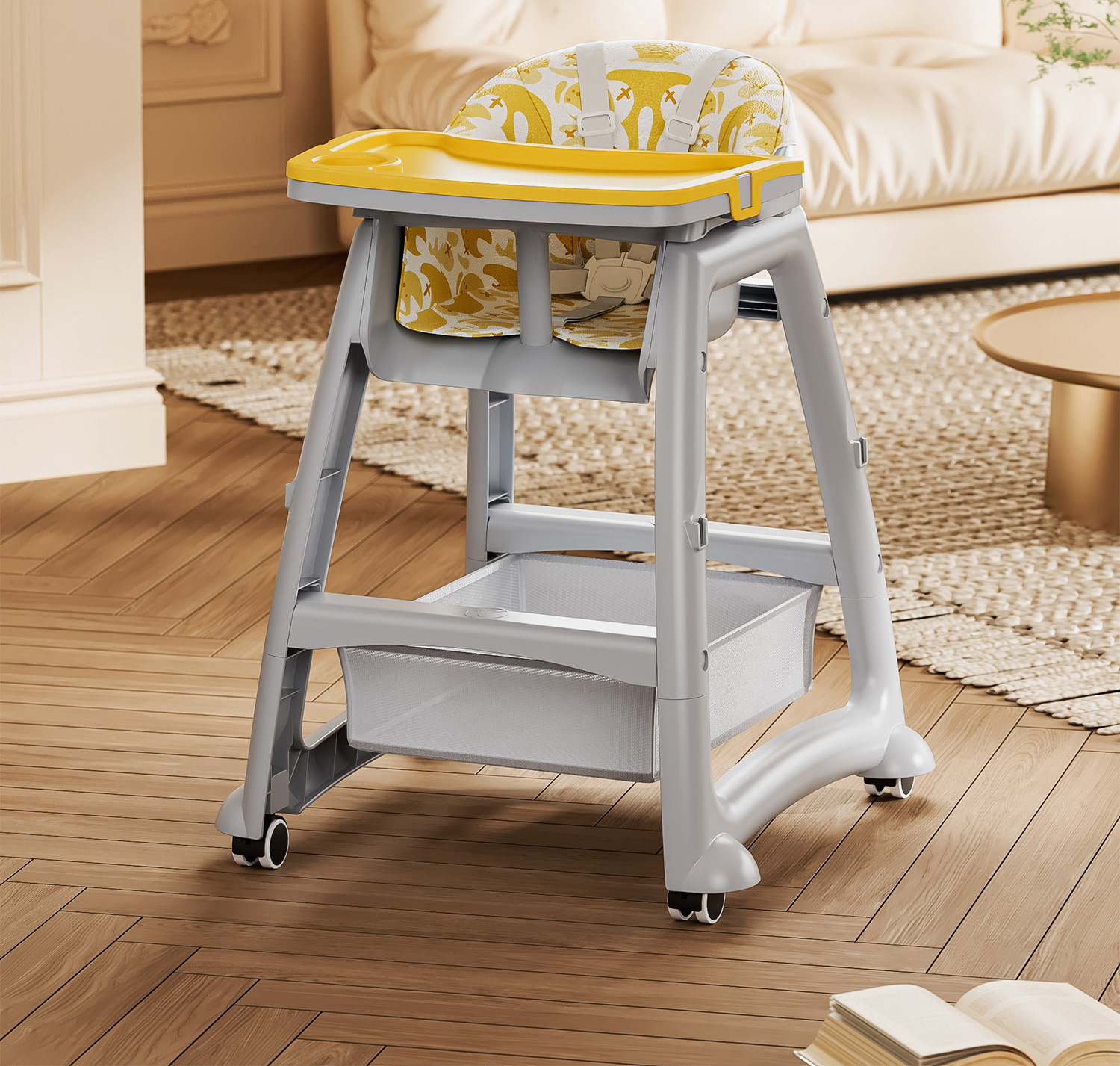 [heightened] yellow dining chair + brake wheel + net pocket