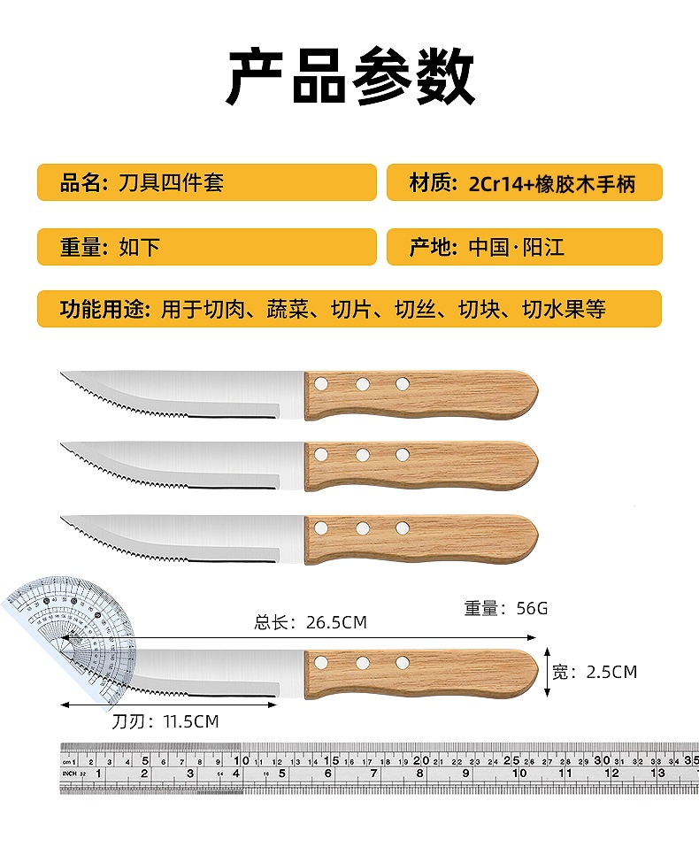 5.5-inch rubber wooden handle steak knife