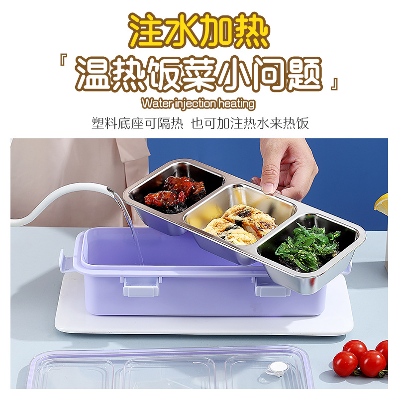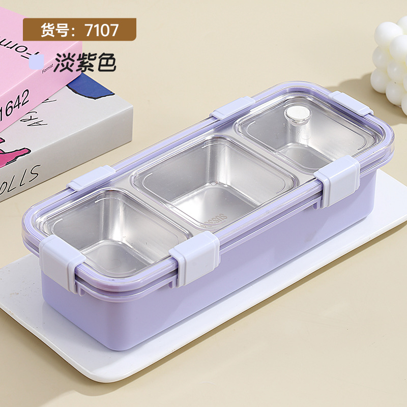 simple three-grid light food stainless steel compartment lunch box student office worker buckle sealed fresh lunch box wholesale box