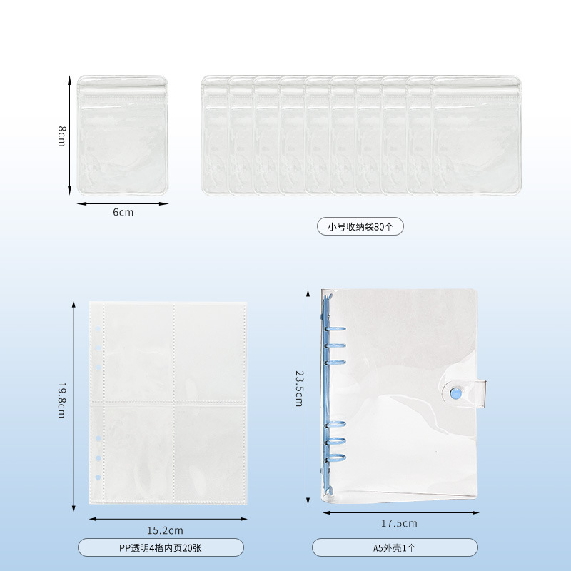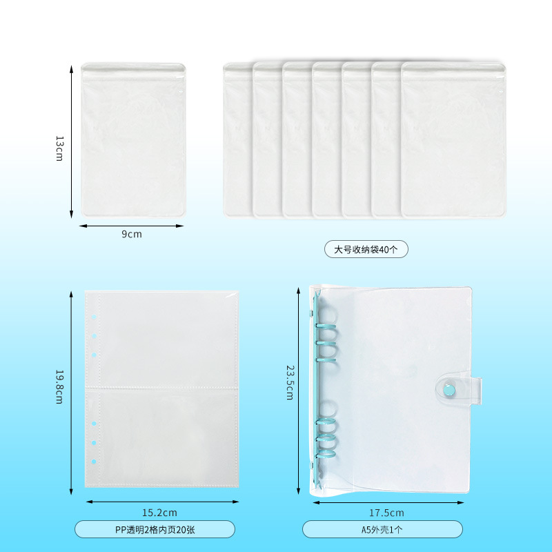 a5 transparent snap fastener sky blue 4 grid 20 pieces (small size bags 80 pieces)
