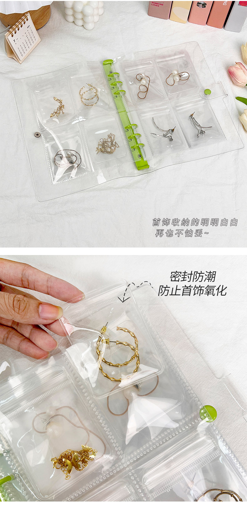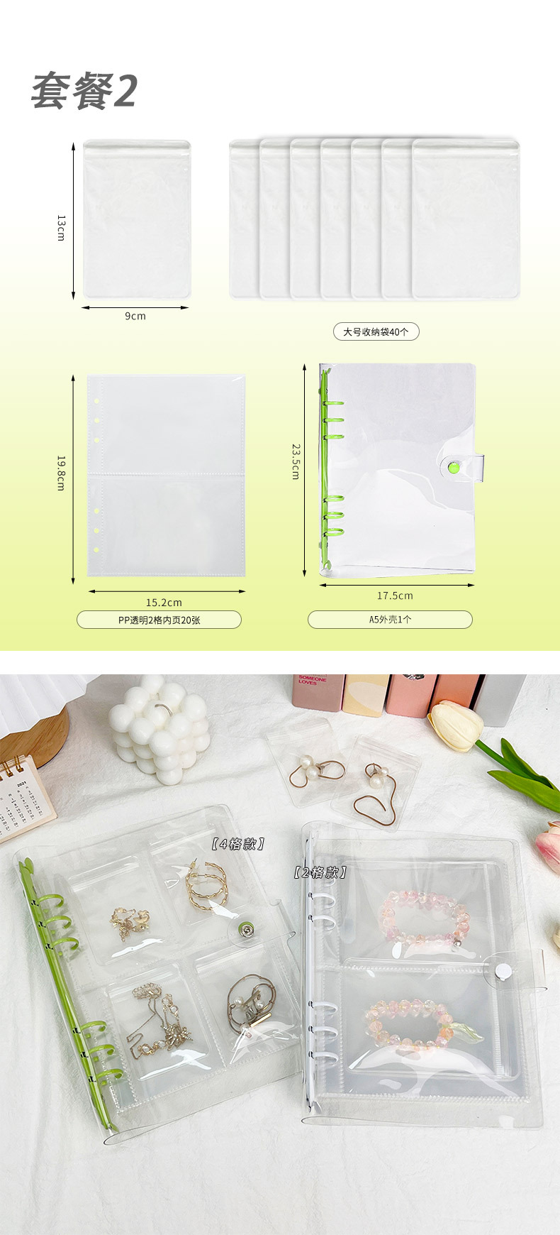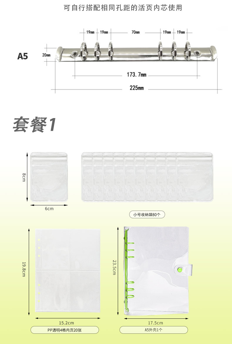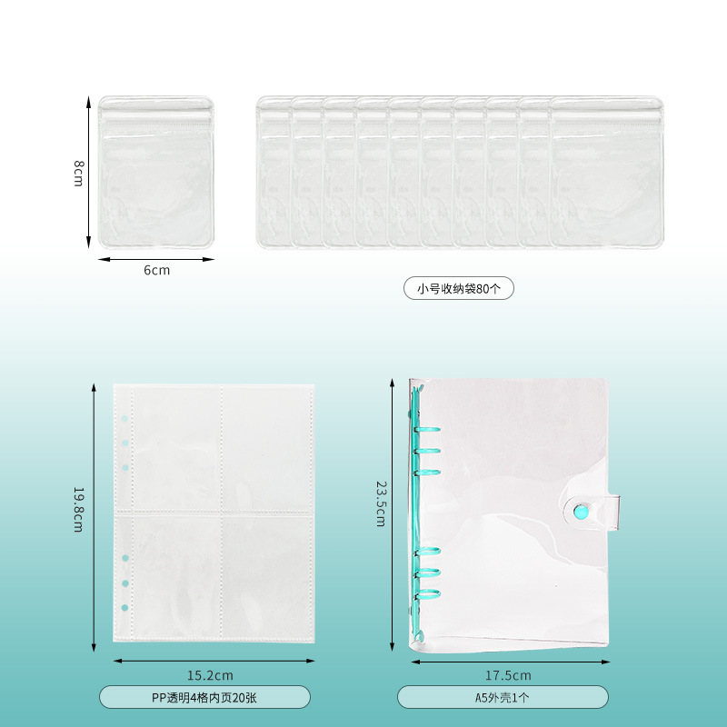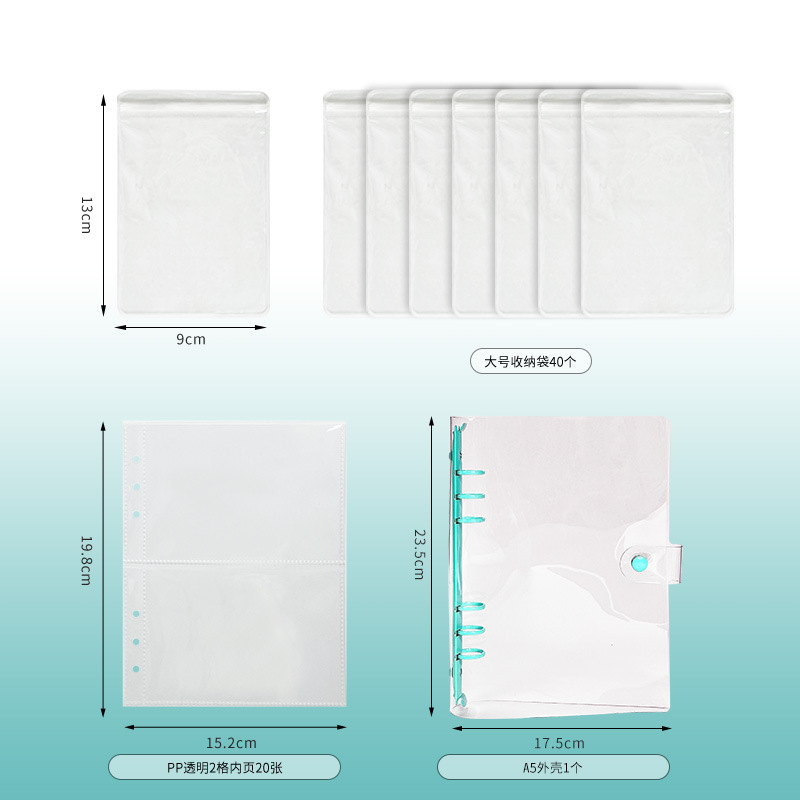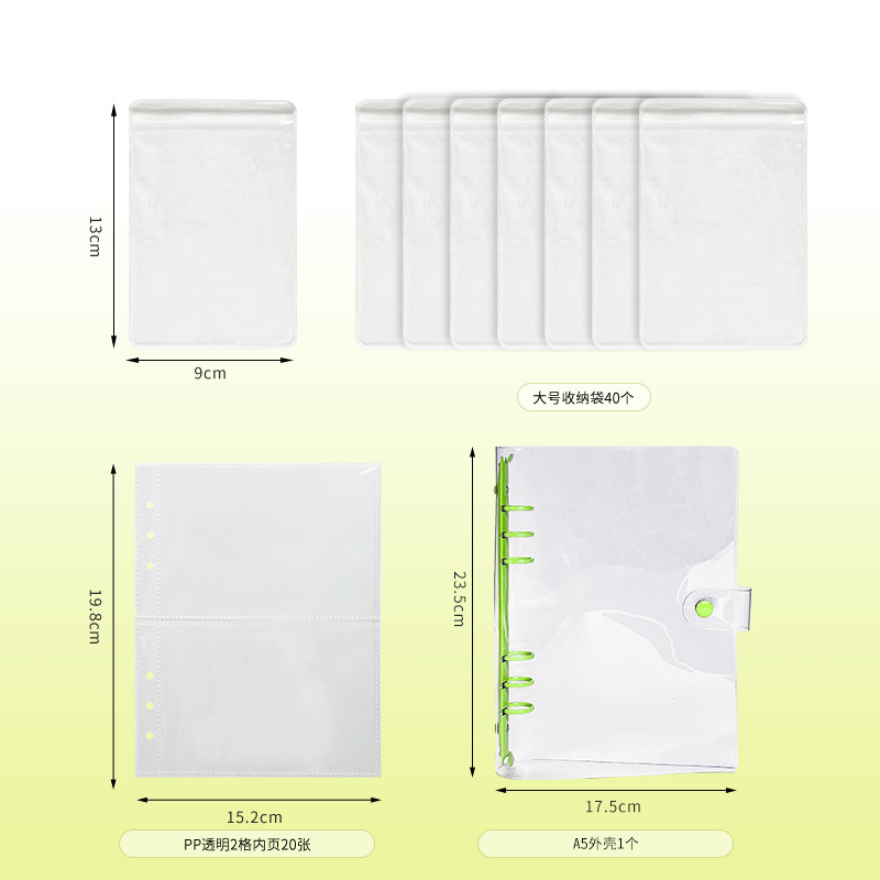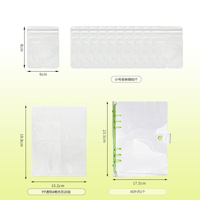 a5 transparent snap fastener style light green 4 grid 20 pieces (small size bags 80 pieces)