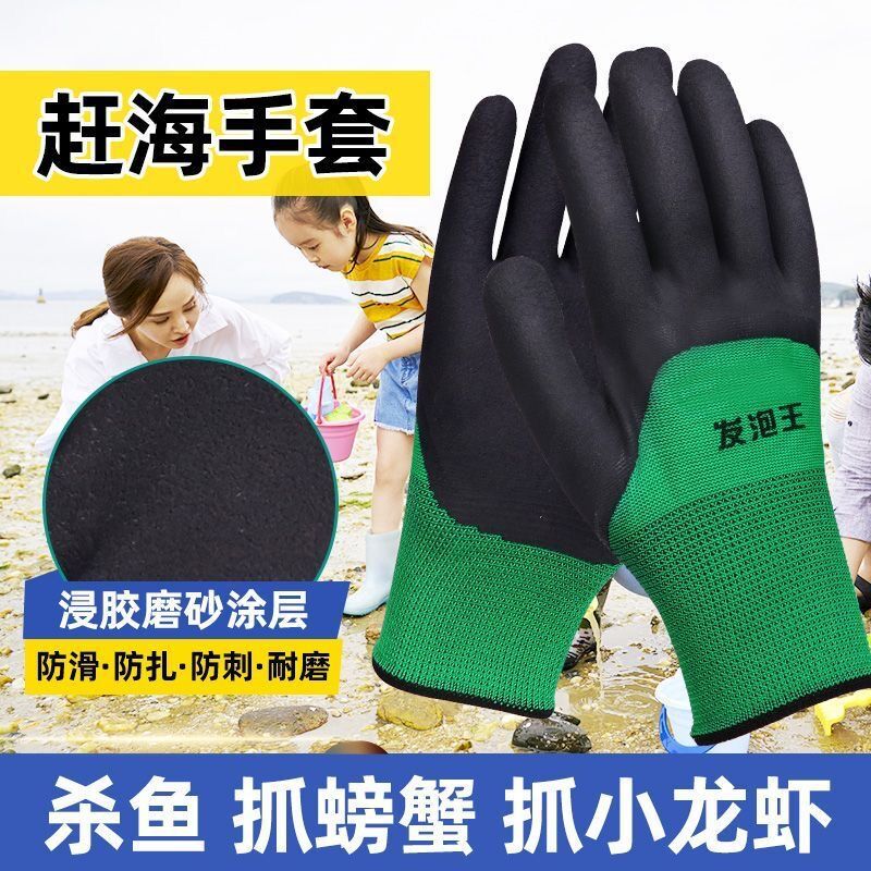 grass green black gloves