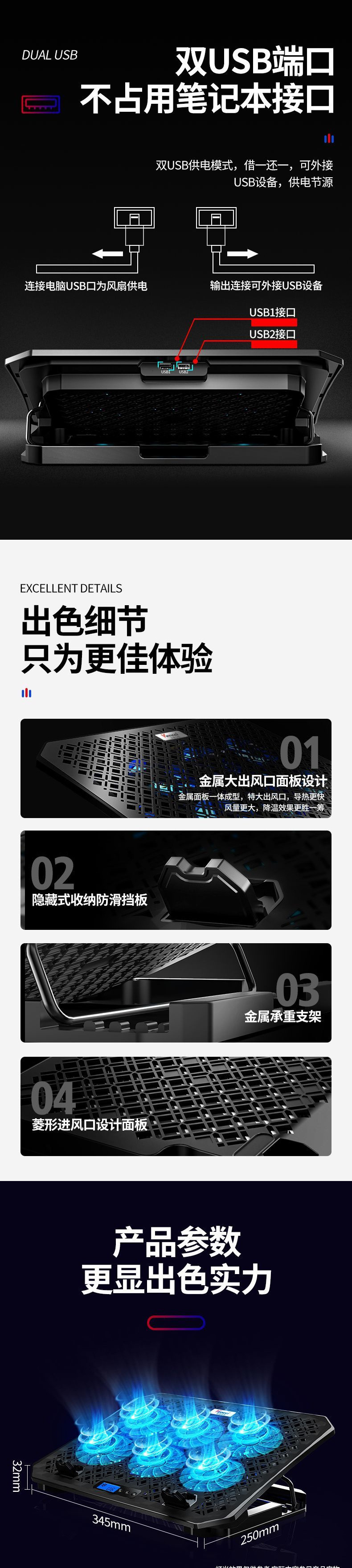 twin fan no speed regulation [send detachable mobile phone holder]]