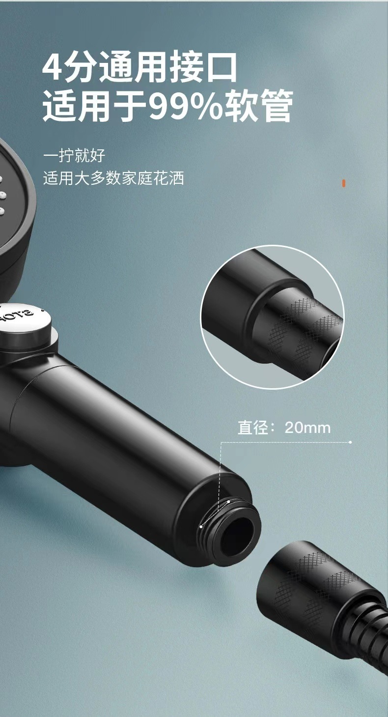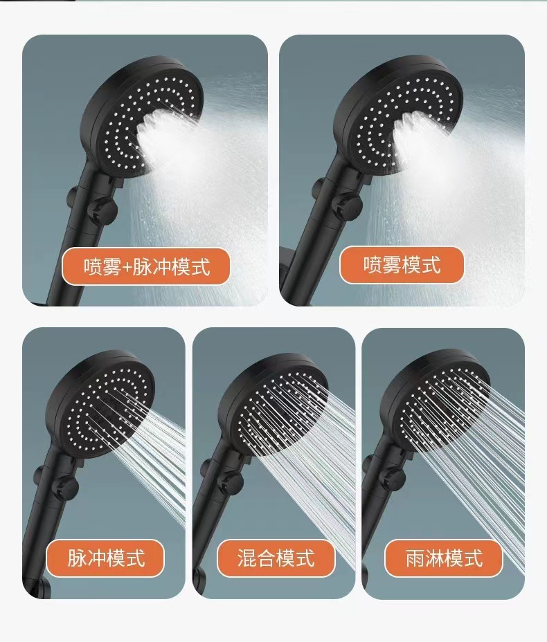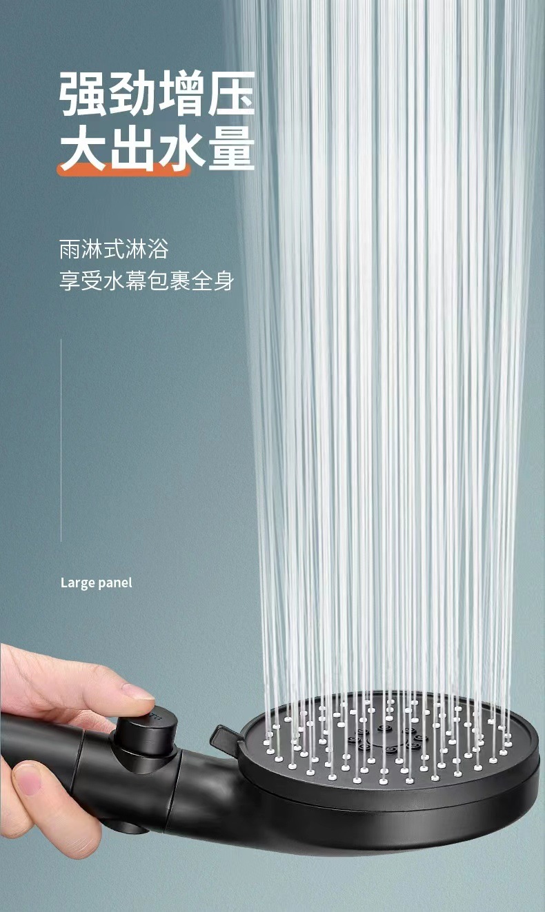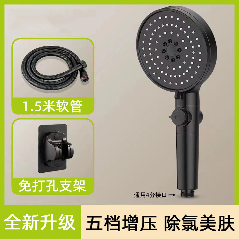 [black] supercharged filtering shower head + explosion-proof hose