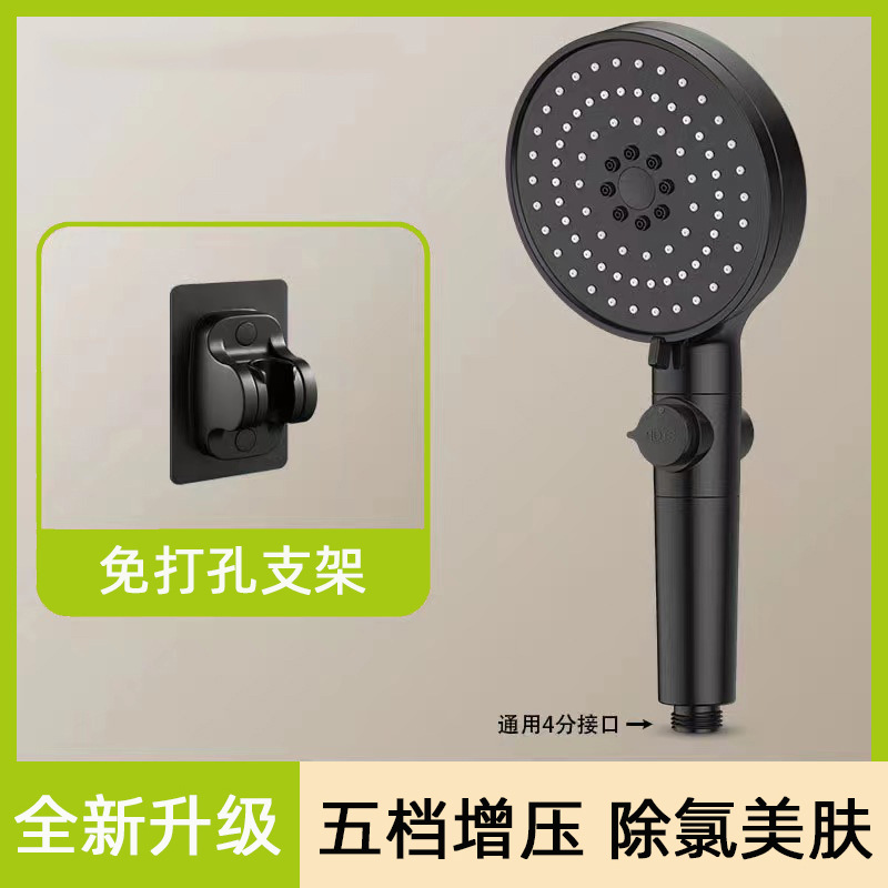 [black] supercharged filtering shower head + punch free rack + explosion-proof hose