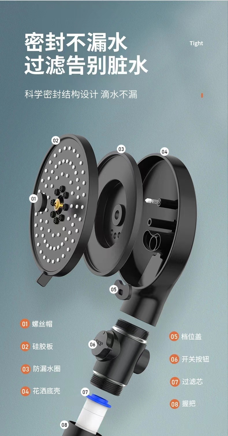 [silver] supercharged filtering shower head + explosion-proof hose