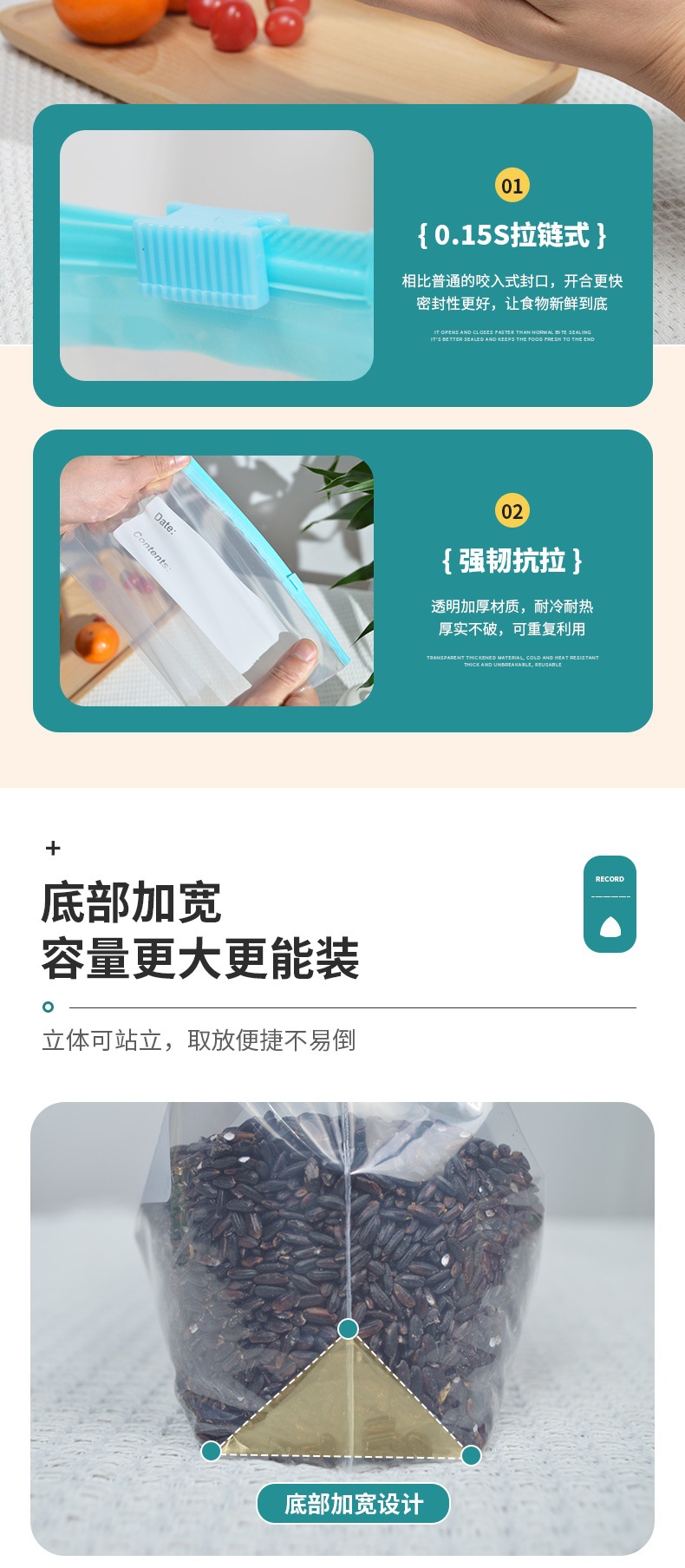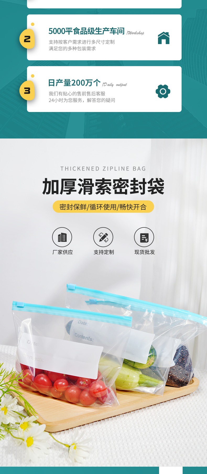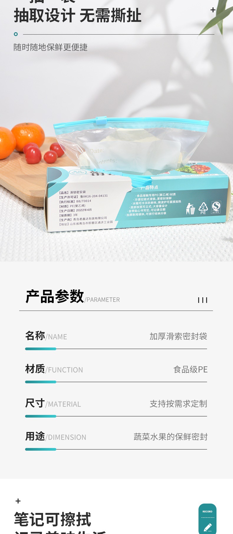 factory direct sales removable food sealed slide bag food grade freshness protection package storage and refrigeration dedicated packing bags