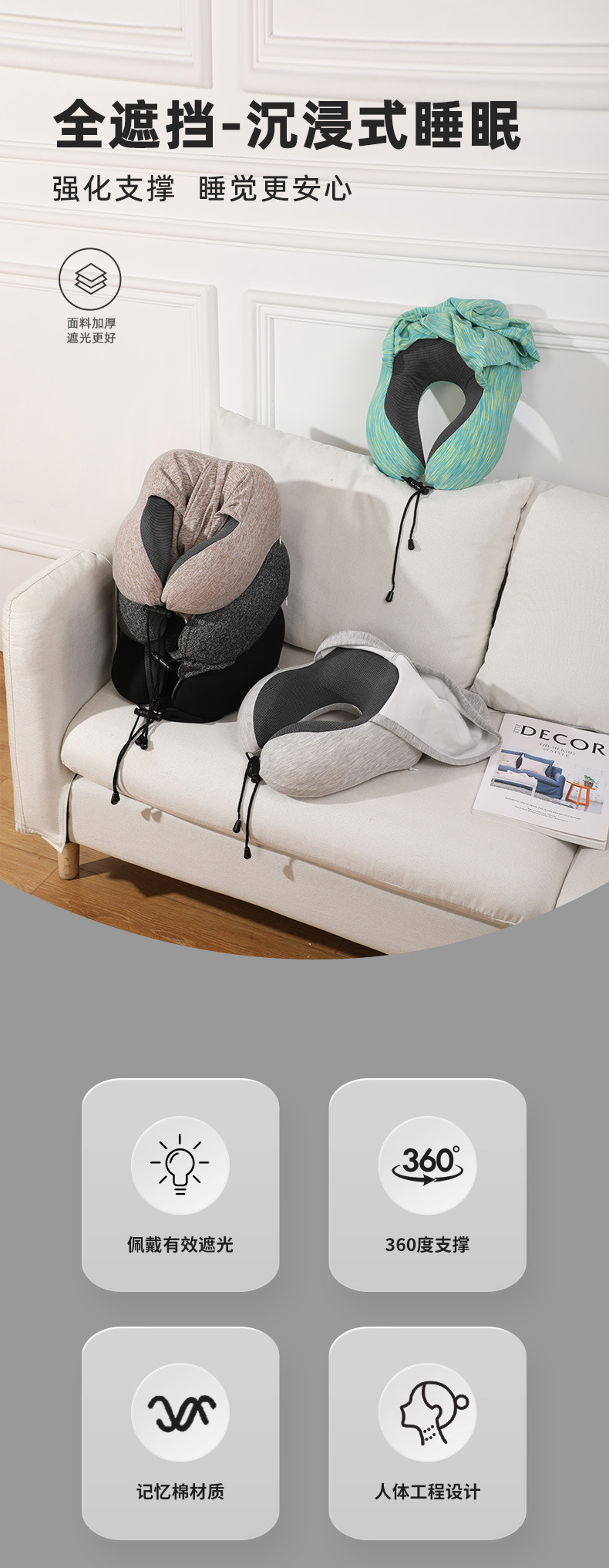 | neck pillow + earplugs + 3d eye mask + buggy bag + color box | CN¥ 28.2 | 584 piece available |