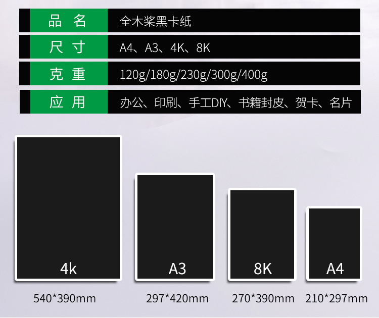 | a4 black card 450g 50 pieces | CN¥ 16.54 | 3732 piece available |