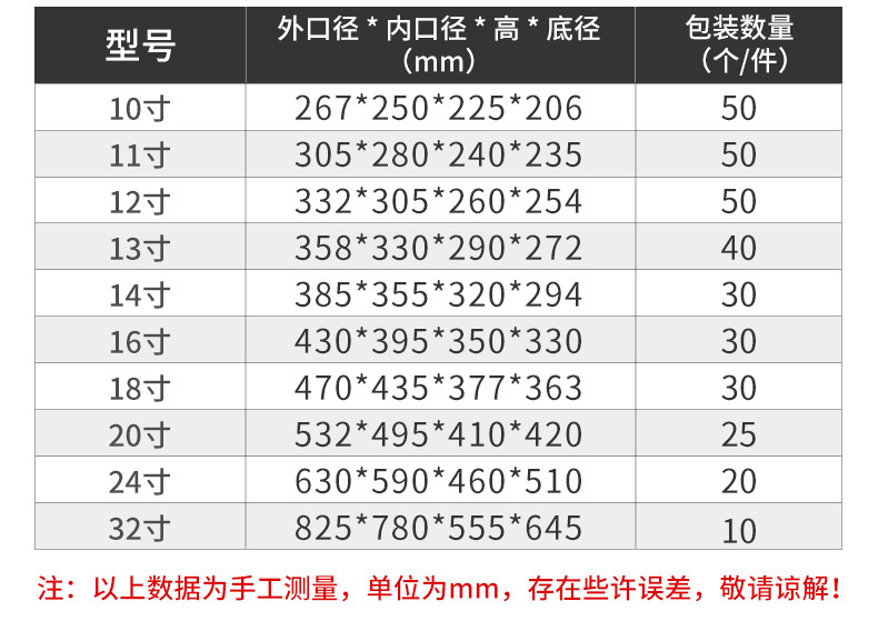 | 13-inch (outer caliber 358x height 290mm)40 pieces per piece | CN¥ 10.8 | 999999 piece available |