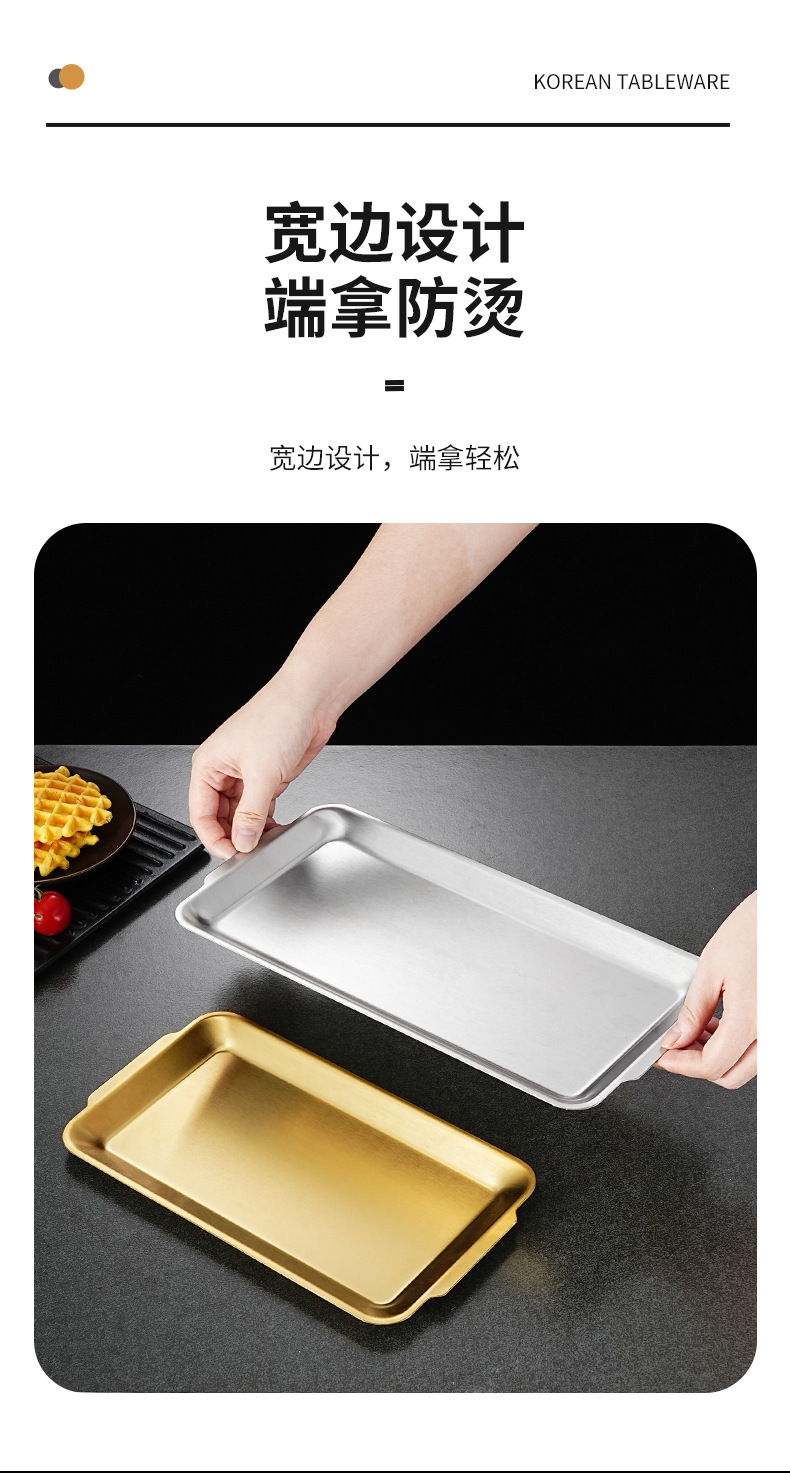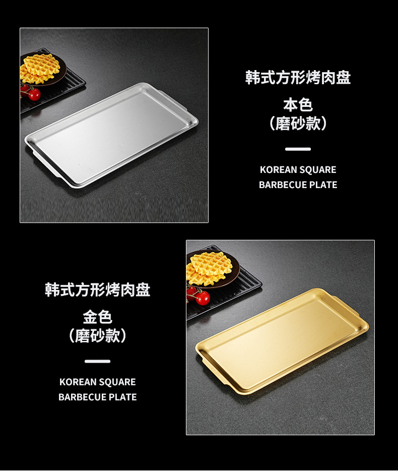 304 stainless steel korean rectangular barbecue plate gold internet celebrity barbecue grilled fish dish home use and commercial use flat tray