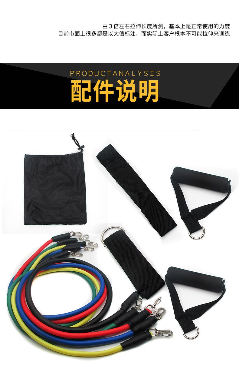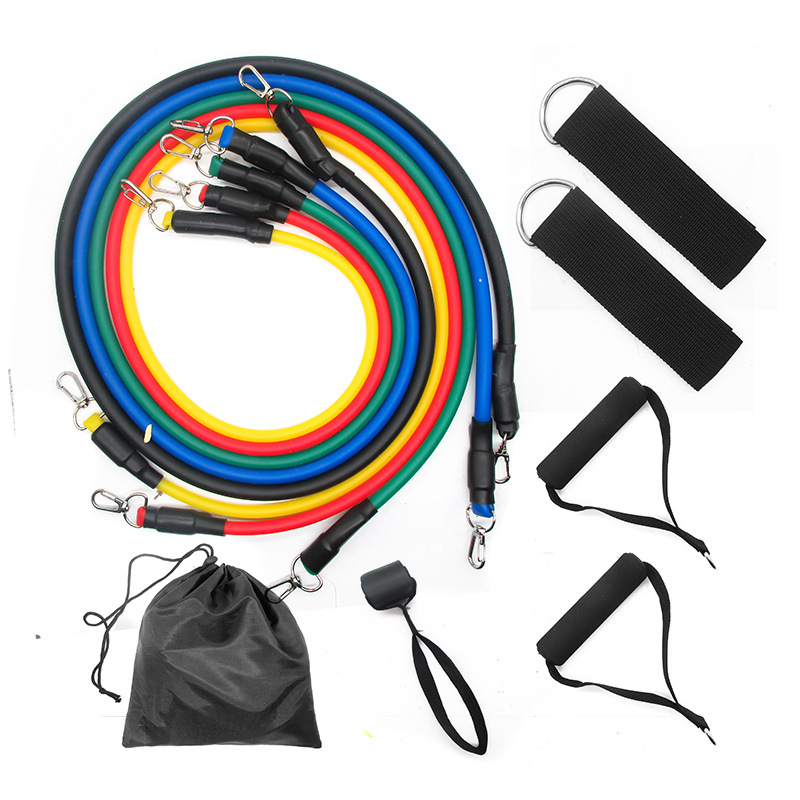 11-piece resistance band set with hoops, as shown in the pictures.