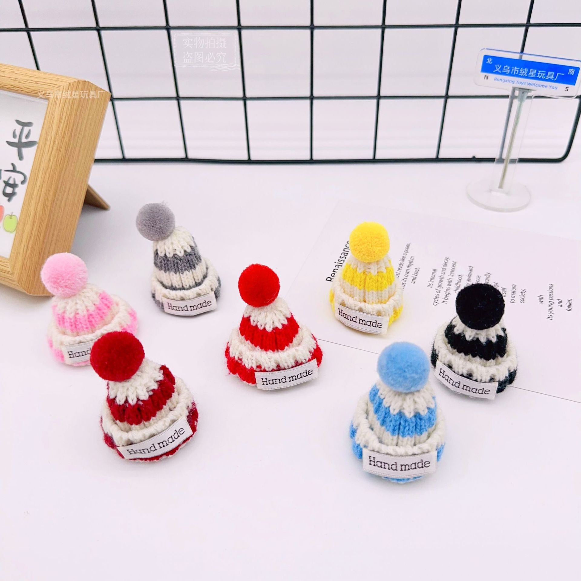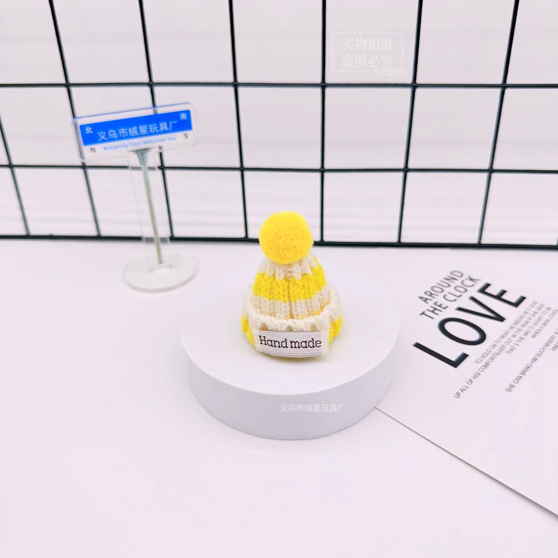 rx081 fur ball knitted hat-white and yellow