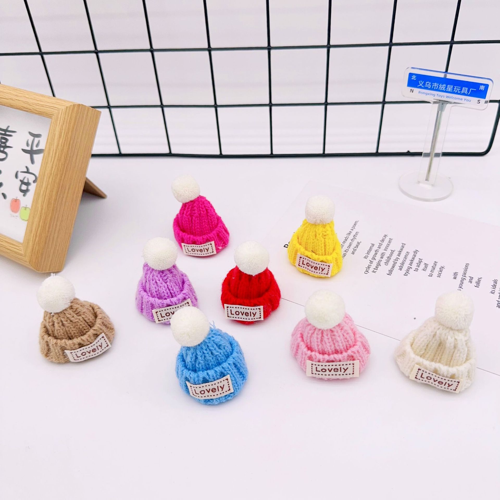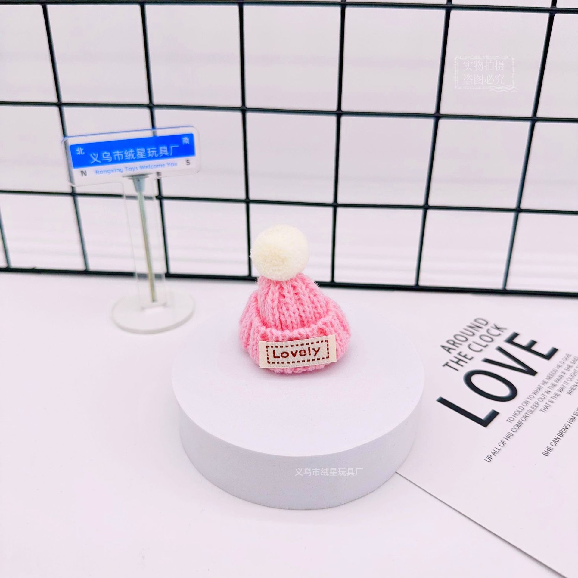 rx081 fur ball knitted hat-pink and white