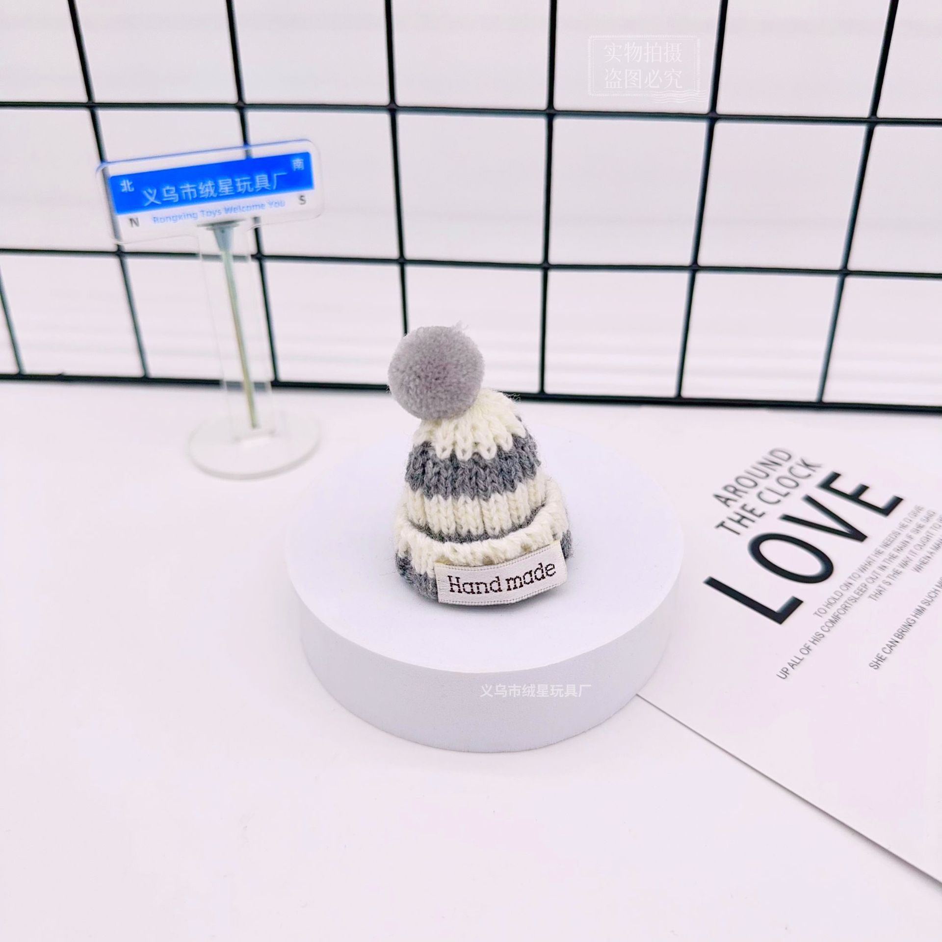 rx081 fur ball knitted hat-gray and white