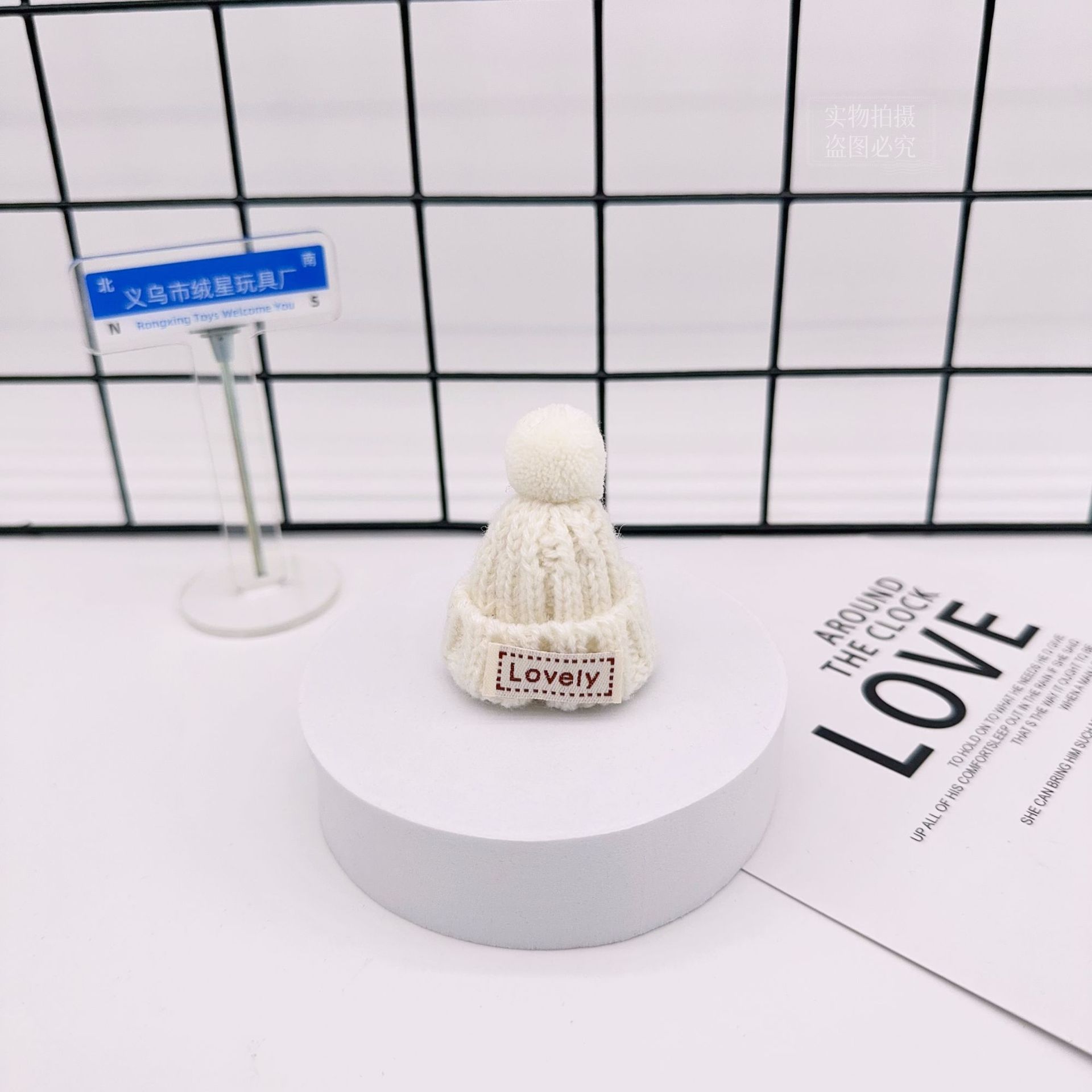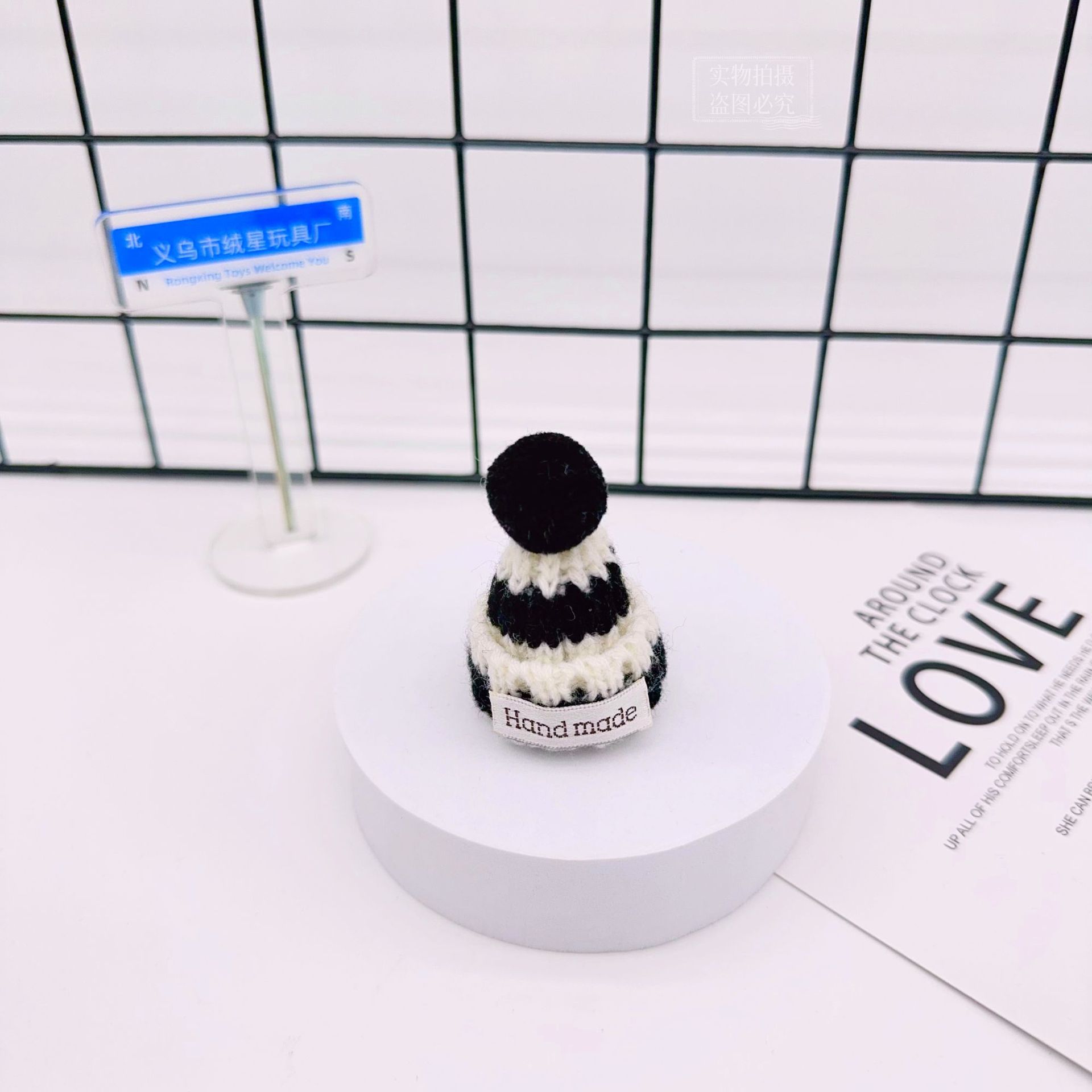 rx081 fur ball knitted hat-black and white