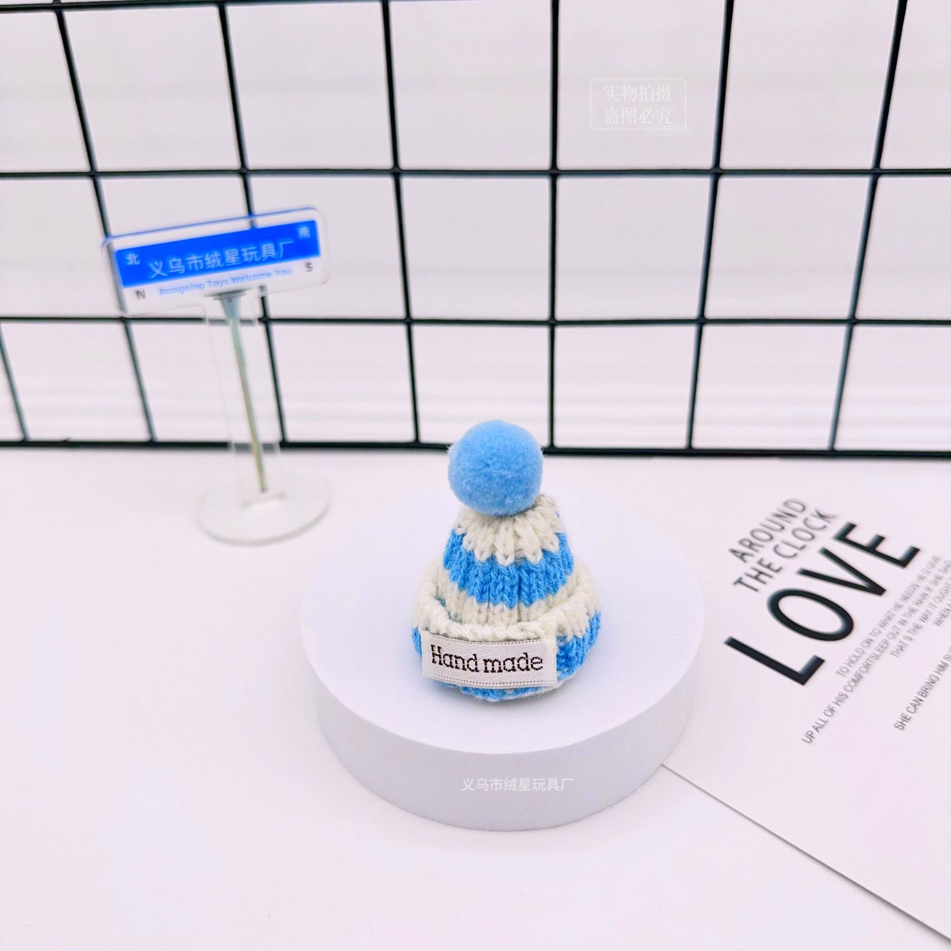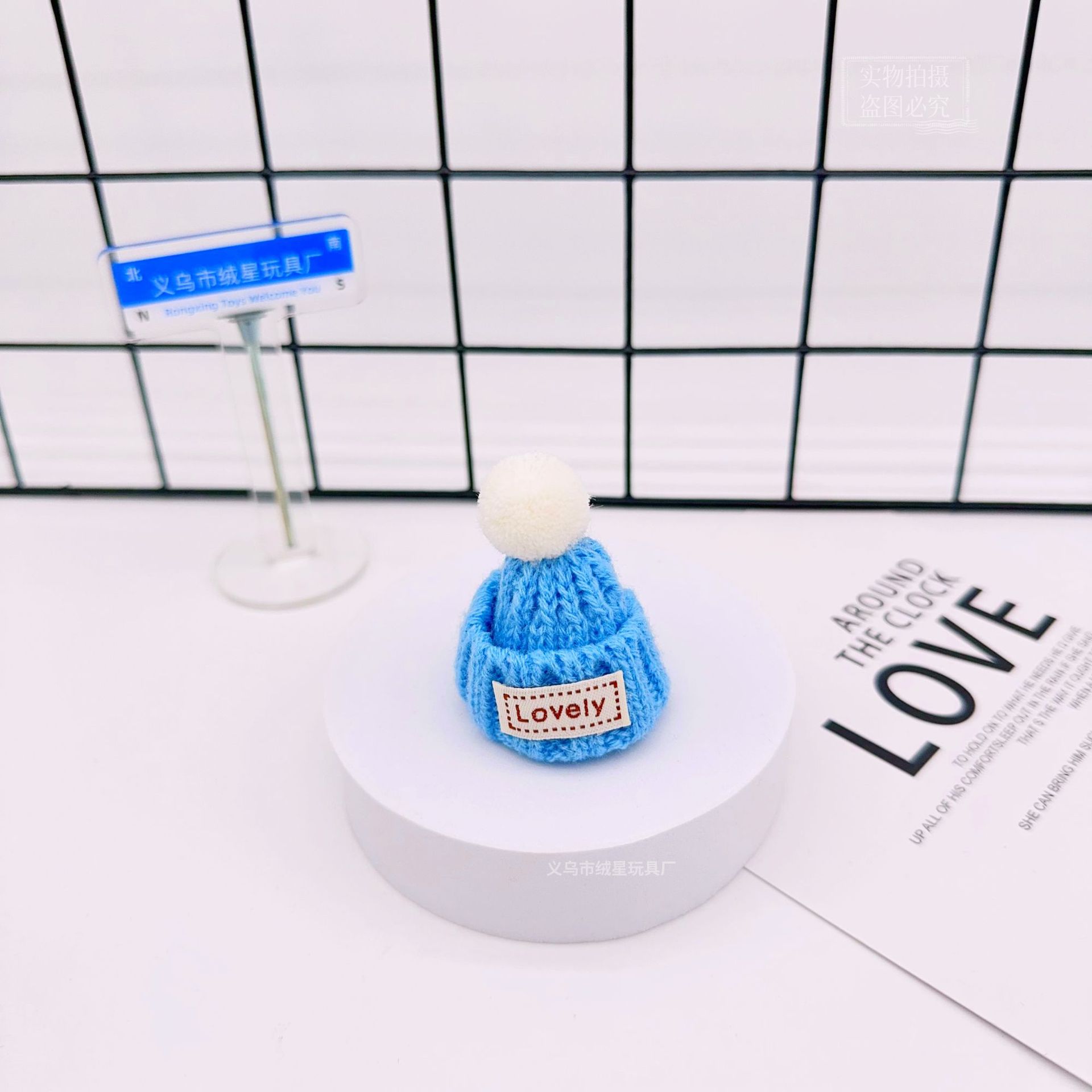 rx081 fur ball knitted hat-blue and white